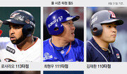 올 시즌 프로야구 개인 기록 타이틀 중 한 치 앞을 내다보기 힘든 안갯속 경쟁이 벌어지는 곳이 있습니다. 타점왕 부문입니다. 최근 4년간 박병호(30·현 미네소타)가 독식해 온 타점왕 자리를 두고 한화 로사리오(27)와 삼성 최형우(33), 두산 김재환(28), NC 테임즈(30), 한화 김태균(34) 등이 치열한 접전을 벌이고 있습니다. 선두와 5위의 타점 차는 10점도 안 돼 자고 일어나면 순위가 바뀌는 상황입니다. 왕좌에 한 걸음 다가선 이는 로사리오입니다. 시즌 초 바깥쪽으로 흘러나가는 공에 약점을 보이던 로사리오는 국내 무대에 적응하며 메이저리그 출신이라는 이름값에 걸맞은 활약을 보여주고 있습니다. 지난달 28일에는 거포의 상징인 30홈런-100타점 고지를 정복했습니다. 한화 구단으로서는 17년 만의 기록입니다. 한화의 역대 최고 외국인 타자로 꼽히는 데이비스와 비교되는 로사리오가 타점왕에 오르면 2008년 롯데의 가르시아(111타점) 이후 8년 만에 외국인 타점왕이 됩니다. 물론 말처럼 쉬운 것은 아닙니다. 삼성 4번 타자 최형우가 턱밑에서 로사리오를 추격하고 있기 때문입니다. 타점 상위 5명 중 유일하게 타점왕(2011시즌)을 경험해 본 최형우는 8월에만 35타점을 거둬 들이며 선두 자리를 위협하고 있습니다. 올 시즌이 끝나면 자유계약선수(FA) 자격을 얻는 최형우로서는 보다 좋은 계약조건을 끌어내기 위해서 타점왕 타이틀이 어느 때보다 필요합니다. 올 시즌 두산의 새로운 4번 타자로 자리매김한 김재환도 만만치 않습니다. 김재환이 믿는 구석은 팀 득점력입니다. 팀 득점 1위에 올라있는 두산이다 보니 주자를 불러들이는 역할을 하는 김재환으로서는 경쟁자들보다 잘 차려진 밥상을 받아 드는 셈입니다. 2014년 국내 프로야구에 데뷔해 2년 연속 박병호에게 밀려 타점 2위에 만족해야 했던 테임즈도 올해만은 타점왕을 놓치고 싶지 않을 겁니다. 10개 구단 중 NC의 잔여 경기(32경기)가 가장 많다는 점은 테임즈에게는 호재입니다. 타점과 직결되는 홈런 부문에서 1위를 달리고 있는 것도 테임즈에게는 큰 힘입니다. 사실 타점왕 경쟁에서 로사리오의 가장 강력한 경쟁자는 팀 동료 김태균입니다. 5번 타자 로사리오에 앞서 타석에 들어서는 김태균이 타점을 챙기면 챙길수록 로사리오에게 돌아오는 기회가 줄어들기 때문입니다. 박병호(124점)와 테임즈(121점)가 타점왕 경쟁을 벌이던 2014년에는 3타점으로 희비가 엇갈렸습니다. 매일 살얼음 승부를 벌이는 선수들에겐 미안한 이야기지만 시즌 막바지까지 즐길 관전 포인트가 있다는 것은 야구팬들에게는 기쁨입니다.강홍구 기자 windup@donga.com}