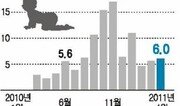 삼겹살 외식비와 돼지고기 가격 등 생활물가가 급등하면서 소비자물가가 6개월째 4%대의 고공행진을 이어갔다. 1일 통계청에 따르면 6월 소비자물가는 지난해 같은 달보다 4.4% 상승하며 올 들어 6개월 연속 4%대 상승세를 보였다. 특히 소비자물가에서 수급에 따라 가격이 자주 변하는 농산물과 석유류 등을 제외하고 산출한 근원물가는 전년 동월 대비 3.7%나 올라 2009년 5월(3.9%) 이후 25개월 만에 최고치를 기록했다. 물가상승 압력이 갈수록 높아지고 있다는 뜻이다. 품목별로는 가족 단위로 즐겨 먹는 돼지고기가 전년 동월 대비 46.3%나 급등한 가운데 삼겹살 외식비가 16.6%, 돼지갈비 외식비가 15.3% 올랐다. 무관세 수입량을 늘리고 군대 급식용 육류를 돼지에서 쇠고기로 바꾸는 노력에도 가격상승세가 좀처럼 잡히지 않고 있다. 한국 음식에 거의 빠지지 않는 마늘과 고춧가루도 각각 43.7%, 25.8% 급등하는 등 장바구니 물가의 오름세가 두드러졌다. 또 설탕이 29.8%, 자동차용 액화석유가스(LPG)도 전년 동월 대비 17.7% 상승했다. 하반기 공공요금 인상이 예고된 가운데 도시가스 요금은 지난해 같은 달보다 10.4%나 올랐다. 전세금은 4.6% 올라 2003년 5월(4.8%) 이후 약 8년 만에 최고치였으며 월세도 2.8%로 1996년 10월(2.9%) 이후 14년 7개월 만에 최고치를 나타냈다.조은아 기자 achim@donga.com}
