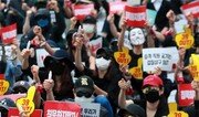 아시아나항공 직원들이 ‘기내식 대란’을 계기로 박삼구 금호아시아나그룹 회장 등 경영진 퇴진 투쟁에 본격적으로 나섰다. 8일 서울 종로구 세종문화회관 앞 계단에서 ‘아시아나항공 노밀(No Meal) 사태 책임 경영진 규탄 문화제’가 열렸다. 마스크와 선글라스, 가면 등으로 얼굴을 가린 아시아나항공 직원 400여 명(주최 측 추산)이 참가했다. 이들은 기내식 대란에 대한 박 회장의 책임론을 제기했다. 저마다 ‘승객·직원 굶기는 39 OUT!’ ‘침묵하지 말자!’ 등의 문구가 쓰인 피켓을 들었다. 아시아나항공 부기장 A 씨는 “이번 기내식 대란은 충분히 예상 가능한 것이었다. 박 회장 이하 경영진이 대책 없이 직원들에게 잘못을 떠넘겼다”고 분통을 터뜨렸다. 10년 차 승무원 B 씨는 “기내식 사태 때 손님들에게 제대로 된 서비스를 제공하지 못한다는 생각에 자존감이 바닥으로 떨어졌다. 비행이 끝나고 울먹이는 동료들을 보면서 더 이상 참으면 안 된다고 생각했다”고 말했다. 참가자들은 대부분 검은색 옷을 입었다. 기내식 대란 중에 2일 스스로 목숨을 끊은 협력업체 화인CS 대표 윤모 씨(57)를 추모하기 위해서다. 현장에는 윤 씨의 조카도 참석했다. 그는 “삼촌이 왜 돌아가셨는지, 착하고 밝은 사람이 왜 극단적인 선택을 했는지 원인이 밝혀지고 잘못된 일이 바로잡혀야 한다. 유가족이 바라는 건 그것뿐이다”라며 울먹였다. 앞서 아시아나항공 직원들은 6일 같은 장소에서 촛불문화제를 열었다. 두 차례 집회에는 대한항공 직원도 참가했다. 대한항공직원연대는 현장 근처에서 갑질 근절 서명운동을 실시하며 “조양호도 물러나고, 박삼구도 물러나라”는 구호를 외쳤다. 대한항공 직원들은 조현민 전 대한항공 전무의 ‘물컵 사건’을 계기로 총수 일가의 갑질을 규탄하며 퇴진 투쟁을 벌이고 있다. 그동안 4차례에 걸쳐 촛불집회를 열었다. 아시아나항공도 기내식 대란을 계기로 경영진 갑질 폭로로 이어지는 양상이다. 최근 승무원 교육생들이 박 회장을 위해 노래와 율동을 연습하는 영상이 공개되는 등 직원들의 폭로가 이어지고 있다. 10년 차 승무원 C 씨는 “회장이 한 달에 한 번 방문할 때마다 중간 관리자들이 안기는 사람과 우는 사람을 정해줬다. 나라를 대표하는 국적기가 맞는지 창피한 마음”이라고 주장했다. 윤다빈 기자 empty@donga.com}