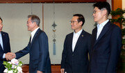 문재인 대통령은 16일 청와대에서 5당 원내대표와 오찬회동을 갖고 “다음 달 평양 남북 정상회담 이전에 판문점선언 비준 동의를 해달라”고 요청했다. 문 대통령은 “4·27 판문점선언에 대해 국회에서 비준 동의를 해주신다면 평양에서 정상회담을 가질 때 훨씬 더 힘이 되지 않을까 생각한다”며 이같이 말했다고 참석자들이 전했다. ‘한반도 주인론’을 꺼낸 문 대통령이 남북 철도, 도로 연결이 담긴 판문점선언의 국회 비준 동의로 남북 경협에 속도를 높이고 비핵화 협상을 촉진하겠다는 뜻을 재확인한 것이다. “비핵화와 종전선언의 접점을 찾는 노력을 주도적으로 해야 한다. 비핵화와 남북관계 개선은 따로 떨어지는 문제가 아니다”라고 말하기도 했다. 특히 문 대통령은 “마이크 폼페이오 미국 국무장관이 네 번이나 북한을 방문하게 되는데 전례 없는 속도감”이라며 “크게 걱정하지 않아도 된다”고 말했다. 문 대통령은 또 “선거제도 개편을 강력하게 지지한다”고 밝혔다. 개헌 무산 후 문 대통령이 선거제도 개혁을 언급한 것은 처음으로 여당인 더불어민주당이 선거구제 개편에 소극적인 가운데 국회 논의가 본격화될지 주목된다. 문 대통령과 여야 원내대표들은 규제혁신 법안의 조속한 처리, 여야정 상설협의체 구성, 남북 정상회담 협력 등 3개항의 합의문을 발표했다. 문병기 weappon@donga.com·최우열 기자}
