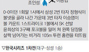 대구구장이 함성으로 뒤덮였다. 그가 타석에 등장하면서였다. 0-0이던 1회말 1사 1루. 그는 1스트라이크 1볼에서 SK 선발 윤희상의 시속 128km짜리 바깥쪽 약간 높은 포크볼을 침착하게 받아쳤다. 깊숙한 외야 플라이처럼 보이던 타구는 좀체 멈추지 않더니 기어이 왼쪽 담장을 살짝 넘어갔다. 함성은 굉음으로 바뀌었다. 10년 만에 한국시리즈 무대에 선 ‘국민 타자’ 삼성 이승엽이 24일 열린 한국시리즈(4선승제) 1차전에서 결승 2점 홈런을 터뜨리며 3-1 승리를 이끌었다. 2004년 일본에 진출한 이승엽이 마지막으로 한국시리즈에 출전한 것은 2002년 11월 10일 역시 대구에서 열린 LG와의 한국시리즈 6차전이었다. 이전 타석까지 20타수 2안타로 부진했던 그는 6-9로 뒤진 9회말 1사 1, 2루에서 LG 투수 이상훈을 상대로 기적 같은 동점 홈런을 터뜨렸다. 벼랑 끝에서 살아난 삼성은 다음 타자 마해영이 끝내기 홈런을 터뜨려 창단 후 처음으로 한국시리즈 우승의 기쁨을 누렸다. 당시 삼성 사령탑 김응용 감독이 LG 김성근 감독을 놓고 “야구의 신과 싸우는 것 같았다”는 유명한 말을 남긴 경기였다. 2002년 이승엽이 환호할 때 고개를 숙여야 했던 LG 포수 조인성은 SK 유니폼을 입고 10년 만에 다시 밟은 한국시리즈에서 또 한 번 아픔을 겪었다. 같은 장소, 같은 상대였고 홈런을 맞은 공은 이번에도 변화구였다. ‘10년 만에’ 한국시리즈 연타석 홈런을 때린 이승엽은 포스트시즌 통산 13홈런으로 이 부문 타이기록을 세웠다. 삼성은 7회 1사 2루에서 배영섭의 내야 안타 때 대주자 강명구가 날렵하게 홈까지 파고들며 승부에 쐐기를 박았다. 삼성 선발 윤성환은 5와 3분의 1이닝을 4안타 1실점(비자책)으로 막고 한국시리즈 생애 첫 승을 챙겼고, 8회 2사 1루에서 등판해 네 타자를 퍼펙트로 막은 오승환은 자신이 갖고 있는 한국시리즈 통산 최다 세이브 기록을 ‘7’로 늘렸다. 최우수선수로 뽑힌 이승엽은 “풀스윙을 했기 때문에 홈런이 될 줄 알았다. 그 순간 이길 것이라고 생각했다”고 말했다. 삼성은 1차전을 이기며 5번째 한국시리즈 우승 가능성을 한껏 높였다. 역대 28차례의 한국시리즈(1차전이 무승부였던 1982년 제외)에서 1차전 승리 팀이 우승한 횟수는 23차례(82.1%)다. 게다가 최근 10년간 한국시리즈에서는 모두 정규시즌 우승 팀이 챔피언이 됐다. 2차전은 25일 오후 6시 같은 장소에서 열린다. ▼양 감독의 말▼윤성환, 1선발 우려 잠재워▽삼성 류중일 감독=이승엽이 10년 만에 한국시리즈 축포를 터뜨려 기분이 좋다. 언론에서 장원삼을 먼저 1차전에 투입해야 한다는 보도가 있었다. 선발 윤성환이 그걸 잠재웠다. 키 플레이어로 지목했던 구원 심창민은 6회 위기를 잘 넘겼다. 처음 출전한 포수 이지영도 대단한 활약을 했다. 3루 코치를 오래했지만 판단하기 힘든 순간이었는데 강명구가 재치 있게 3루를 돌아 홈까지 파고들었다.윤희상 완투로 2차전에 기대 ▽SK 이만수 감독=선발 투수 윤희상은 7회 정도까지 생각했는데 투구수가 많지 않아 완투시켰다. 윤희상이 길게 던져서 중간투수 과부하가 해소됐다. 2차전부터 좋은 경기를 할 수 있는 기반이 됐다. 삼성 이승엽이 1회 바깥쪽 높은 공을 놓치지 않았다. 그 실투 하나가 유일한 패인이다. 타자들이 기회를 못 만들었는데 2차전에서는 활발한 타격을 기대한다.대구=이승건 기자 why@donga.com 유근형 기자 noel@donga.com}