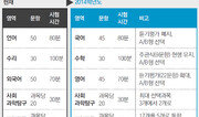 지금의 고교 1학년이 치를 2014학년도 대학수학능력시험부터 국어와 영어 영역의 문항이 5개씩 줄어든다. 국어 수학 영어는 수준에 따라 문제를 고를 수 있다. A형은 쉽고, B형은 어렵지만 ‘쉬운 수능’ 기조에 따라 B형은 지금과 비슷하게 나온다.수능 출제기관인 한국교육과정평가원은 21일 이 같은 내용을 담은 2014학년도 수능 세부시행 방안의 시안을 발표했다. 교육과학기술부가 1월 내놓은 수능 개편 방안에 따라 문항 수와 시험시간을 구체화한 내용이다.앞서 교과부가 예고한 대로 시험 준비의 부담을 낮추기 위해 국어 수학 영어에서 수준별 시험(A, B형)을 도입한다. 영역 명칭은 학교에서 배우는 교과목과 같도록 하기 위해 언어 수리 외국어를 각각 국어 수학 영어로 바꾼다. A형은 문제은행식으로 출제한다. 시안에 따르면 국어와 수학은 동시에 B형을 선택할 수 없으므로 수험생은 B형을 최대 2개까지 고를 수 있다.국어는 전체 문항 50개 중에서 듣기평가의 5개 문항을 없애지만 시험시간은 지금처럼 80분이다. 평가원은 “모국어 듣기평가는 의미가 없다는 지적에 따라 문항을 없앴다”고 밝혔다. 국어 A형은 화법과 작문Ⅰ, 문학Ⅰ 같은 기초과목을 바탕으로 출제하며 B형은 심화교과인 Ⅱ과목을 활용해 출제한다.수학은 지금도 ‘가’형과 ‘나’형으로 나눠 출제하므로 큰 변화가 없다. A형은 ‘나’형, B형은 ‘가’형과 출제 범위, 문항 수, 시험시간이 같다. 평가원 관계자는 “A형은 지금의 ‘나’형보다 조금 더 쉬워진다”고 말했다.영어 문항도 50개에서 45개로 줄지만 시험시간은 지금과 같이 70분이다. 듣기평가 문항이 17개(34%)에서 22개(49%)로 늘어난다. 듣기에는 대화문 1개에 문항이 2개인 ‘세트형’을 처음 도입할 계획이다. A형은 실용영어 수준, B형은 지금의 수능 수준이다.사회·과학탐구는 최대 2과목까지 선택할 수 있다. 직업탐구는 17개 과목을 5개로 합치면서 이 중 1개를 고르게 한다. 제2외국어에는 베트남어가 추가된다.신일용 평가원 수능출제연구실장은 “국어 영어는 문항이 줄고 시간은 그대로이기 때문에 수험생의 부담이 줄어들 것”이라고 말했다. 교과부는 올해 말까지 평가원의 최종안을 받아 검토한 뒤 내년 3, 4월에 확정할 계획이다. 남윤서 기자 baron@donga.com}