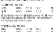 김응용 한화 감독은 30일 삼성과의 대전 안방경기를 앞두고 “앞으로 남은 5경기에서 3승 이상을 하겠다”고 말했다. 한화는 이날 경기를 포함해 5경기를 남겨두고 있었는데 공교롭게도 상대팀은 모두 포스트시즌 진출이 확정된 삼성(2경기) LG(2경기) 넥센(1경기) 등 세 팀이었다. 특히 선두 다툼에 한창인 삼성, LG와 4경기가 남아 있어 한화가 ‘캐스팅 보트’로서 어떤 역할을 할 수 있을지에 관심이 쏠렸다. 김 감독은 “상대팀들이 부담을 갖고 임할 거야”라고 전망했지만 현실은 정반대였다. 선두 삼성은 이날 무려 4방의 홈런포를 쏘아 올리며 3년 연속 정규시즌 1위를 향한 발걸음을 재촉했다. 포문은 최형우가 열었다. 2회초 선두타자로 들어선 최형우는 볼카운트 3볼 1스트라이크에서 한화 선발 윤근영이 던진 한가운데 직구를 그대로 잡아당겨 오른쪽 담장을 훌쩍 넘어가는 대형 홈런(비거리 135m)을 때렸다. 시즌 28호. 삼성 타선은 곧이어 이정식과 김상수가 적시타를 때려 3-0으로 앞서갔다. 4회초 공격에서는 이정식이 윤근영을 상대로 2점 홈런을 쳐 스코어를 5-0으로 벌렸다. 올 시즌 좀처럼 경기에 나서지 못했던 이정식의 시즌 마수걸이 홈런. 5회와 7회에는 박석민과 박한이가 구원 투수 조지훈을 상대로 각각 1점 홈런과 3점 홈런을 때려내 승부에 쐐기를 박았다. 9-2로 승리한 삼성은 73승 2무 50패가 되면서 선두 자리를 굳게 지켰다. 삼성 선발 윤성환은 7이닝 5안타 8삼진 1실점으로 호투하며 시즌 13승째를 따냈다. 전날까지 반 게임 차로 추격하던 LG가 이날 두산에 3-7로 덜미를 잡혀 삼성의 1위 가능성은 더욱 높아졌다. LG는 믿었던 선발 신재웅이 3회도 채 버티지 못하고 무너져 어렵게 경기를 끌고 갔다. 또한 찬스마다 병살타가 나와 공격의 흐름도 이어가지 못했다. LG는 이날 경기가 없던 넥센에 0.5경기 차로 쫓겨 2위 수성을 걱정해야 하는 처지가 됐다. LG가 남은 4경기에서 모두 승리한다 하더라도 넥센이 남은 5경기에서 모두 이기게 되면 순위가 바뀐다. 두산 선발 유희관은 5이닝 2실점으로 승리 투수가 되며 1988년 윤석환(13승) 이후 팀 토종 왼손 투수로는 25년 만에 10승 고지에 올랐다. 롯데는 SK를 7-1로 꺾었고, KIA는 NC에 3-0으로 이겼다.이헌재 기자 uni@donga.com}