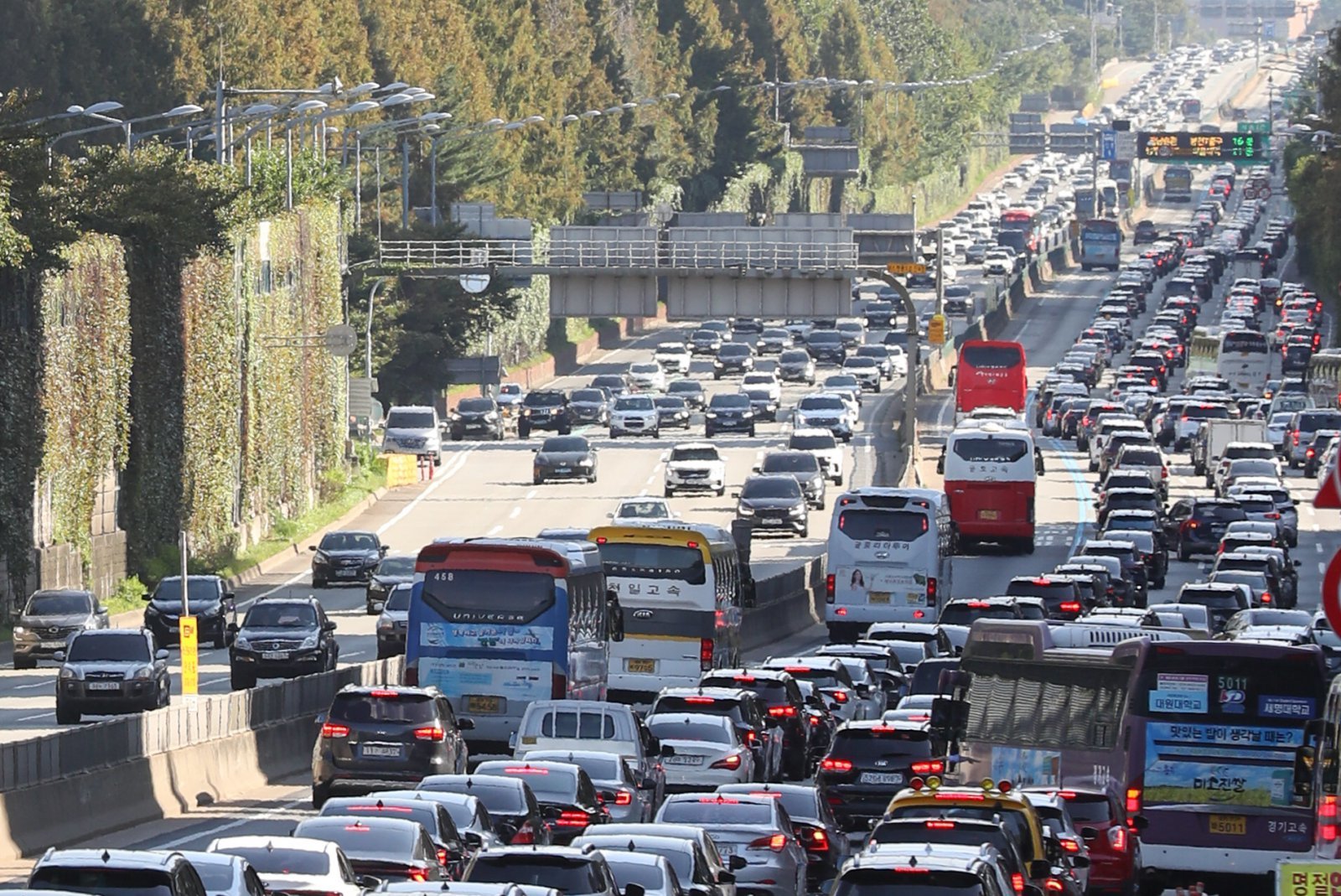 추석인 6일 성묘 등으로 연휴 기간 중 가장 많은 차량이 고속도로를 이용할 것으로 보인다. 오후부터는 귀경 차량으로 서울 방향 도로가 혼잡할 전망이다.한국도로공사는 이날 전국 667만 대의 차량이 고속도로를 이용할 것으로 예상했다. 서울에서 지방 방향은 같은 날 오후 3시경 정체가 절정에 달하고 오후 11시경 해소되겠다. 서울 방향은 오후 5~6시경 가장 혼잡했다가 이튿날인 7일 새벽 1시경 평소 흐름으로 돌아오겠다.한국도로공사에 따르면 이날 오전 10시 요금소 출발 기준 서울에서 지방까지 예상 소요 시간은 △부산 9시간 20분 △울산 9시간 △강릉 4시간 10분 △양양 3시간 20분(남양주 출발) △대전 3시간 30분 △광주 7시간 40분 △목포 7시간 40분(서서울 출발) △대구 8시간 20분이다.지방에서 서울까지는 △부산 9시간 △울산 8시간 40분 △강릉 5시간 △양양 3시간 20분(남양주 도착) △대전 2시간 30분 △광주 7시간 30분 △목포 7시간 30분(서서울 도착) △대구 8시간 등이 걸릴 것으로 예상된다.이날 오전 8시 기준 경부선 부산 방향 동탄분기점~남사 11㎞, 천안분기점~천안호두휴게소 부근 11㎞에서 느린 흐름을 보이고 있다. 또 영동선 강릉방향 마성터널~양지터널 부근 10㎞에서 정체를 빚고 있다.조혜선 기자 hs87cho@donga.com}