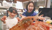 22일 서울 중구 신세계백화점 본점에서 모델들이 ‘동해의 대하’라고 불리는 도화새우를 선보이고 있다. 복숭아꽃처럼 생긴 도화새우는 신세계백화점 본점과 강남점, 영등포점 등에서 구입할 수 있다. 가격은 1kg에 30만 원대(시세 기준)다. 원대연 기자 yeon72@donga.com}