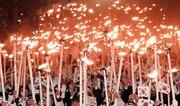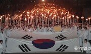 100주년 3·1절을 하루 앞둔 28일 오후 충남 천안시 유관순열사 추모각에서 열린 ‘3·1절 기념 아우내 봉화제’에서 시민 3000여명이 횃불을 들고 아우내 장터를 향해 행진하고 있다. 이날 봉화제는 1919년 4월1일(음력 3월1일) 유관순 열사와 김구응, 조인원 선생 등이 주도한 아우내장터 만세운동 거사 전날 아우내 장터와 가까운 매봉산과 인근의 24개소에 봉화를 올려 다음날 거사를 알렸던 것을 기념하기 위해 마련됐다.원대연 기자 yeon72@donga.com}