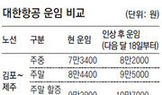 대한항공이 다음 달 18일부터 국내선 전 노선의 운임을 평균 9.9%(일반석 기준) 인상한다. 2004년 7월 인상 이후 8년 만이다. 대한항공은 26일 국내선 일반석 운임을 주중(월∼목) 평균 6%, 주말(금∼일) 평균 12%, 주말 할증 및 성수기(7, 8월) 평균 15% 인상한다고 밝혔다. 이에 따라 현재 주중 7만3400원인 김포∼제주 노선은 8만2000원으로, 주중 6만2400원인 김포∼김해 노선은 7만 원으로 오른다. 현재 일반석 운임보다 4만 원 비싼 프레스티지석은 인상된 일반석 운임에 6만 원 추가하는 것으로 바뀐다. 운임 인상과 관련해 대한항공은 적자 누적에 따른 불가피한 조치라고 설명했다. 대한항공은 “지난 7년간 소비자 물가가 28% 오른 사이 국내선 운임은 제자리여서 적자가 지속적으로 누적되어 왔다”며 “적자를 고려하면 대폭 인상이 필요하지만 국민 생활과 물가에 미치는 영향을 고려해 인상 폭을 최소화했다”고 설명했다. 이번에 인상된 운임은 다음 달 18일부터 적용되지만, 7월 17일까지 인상 전 운임으로 구입할 수 있다. 한편 대한항공은 제주 노선에 한해 주중 특별 할인제도를 도입한다고 밝혔다. 제주행의 경우 월∼목요일 오전 6시대 및 낮 12시 이후 출발편, 내륙행의 경우 월∼목요일 오후 4시 이전 및 오후 9시대 출발편이 대상이며 가격은 일반석 편도 기준 6만2000원이다. 대한항공은 “특별 할인제도를 통해 인상 후 운임보다 평균 24% 싸게 항공권을 구입할 수 있다”며 “제주도를 찾는 관광객이 특정 시기에 몰리는 것을 완화하는 효과도 있을 것”이라고 설명했다.한상준 기자 alwaysj@donga.com}