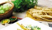 ‘참치카르파초(쇠고기 참치 등 날고기나 날생선을 얇게 썰어 소스를 친 요리)와 인삼깻잎페스토’ ‘연어인삼쌀수프’….’ 2011 금산세계인삼엑스포는 천년(千年) 묵은 인삼 전시 외에 갖가지 ‘인삼퓨전음식’ 경연으로도 관심을 모을 것으로 전망된다. 금산세계인삼엑스포조직위는 행사 기간에 인삼과 세계 각국 요리를 다양한 방식으로 결합한 퓨전요리를 선보인다고 28일 밝혔다. 생활 속의 인삼체험 공간인 ‘건강미소관’에서 선보여 관람객들이 맛도 볼 수 있는 인삼퓨전요리는 모두 30가지로 대전의 우송대 외식조리학부 오석태 교수팀이 개발했다. 선보일 요리 가운데 ‘참치카르파초와 인삼깻잎페스토’ ‘연어인삼쌀수프’를 비롯해 ‘적양파, 오렌지, 인삼샐러드와 그릴에 조리한 포도’, ‘아시안 콜슬로를 곁들인 인삼 바비큐 치킨’ 등은 오찬요리로 개발됐다. 또 ‘구운 닭가슴살과 양파, 인삼 콘피’ ‘구운 인삼과 감자퓌레를 곁들인 쇠고기갈비’ 등은 다이어트 음식이면서도 어린이들에게 인기가 많을 것으로 보인다. ‘인삼이 들어간 대게케이크와 인삼비네그레트’ ‘오렌지인삼셔벗’ ‘마카롱과 인삼을 곁들인 과일타르트’ 등은 일곱 코스 디너요리이다. ‘인삼패션프루트글라세’ 등은 디저트용으로 개발됐다. 오 교수팀은 인삼퓨전음식을 세계인의 식탁에 올리기 위해 코스요리(다섯 코스, 일곱 코스)로 개발한 뒤 전채요리, 주요리, 후식요리 등 구체적인 메뉴와 누구나 쉽게 이용할 수 있는 레시피를 제시했다. 오 교수는 “퓨전요리를 통해 인삼의 이미지가 보양 외에도 다양한 음식재료는 물론이고 몸 안의 독소를 제거해주는 ‘디톡스 레시피’ 등으로 확장되길 기대한다”며 “인삼이 세계인에게 거리감 없는 식품으로 인식되는 계기가 됐으면 좋겠다”고 말했다.지명훈 기자 mhjee@donga.com}