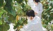 열대 과일로 주로 한반도 남부에서 생산되던 멜론이 충북 충주에서도 생산된다. 충주시농업기술센터는 3월부터 달천동 소득작목 시험장(100m²·약 30평)에 원형과 타원형의 노란 네트멜론과 흰색 황색 녹색 등 7종의 이스라엘산 멜론 140그루를 심어 최근 수확에 성공했다. 이 가운데 4개 품종이 당도와 품질 수량면에서 우수한 것으로 나타났다. 이번에 재배된 멜론의 개당 무게는 2.5∼2.8kg으로 국내에서 재배되는 멜론(1.2∼1.5kg)보다 크다. 당도도 13브릭스(Brix·1Brix는 100g의 물에 1g의 설탕이 녹아 있는 것만큼의 당도)로 높다고 센터 측은 설명했다. 현재 충주지역은 전체 287ha의 밭에서 상추와 방울토마토 수박 오이 등 시설 채소를 주로 재배하고 있는데 자유무역협정(FTA)으로 수입 농산물에 대응할 새 소득 작목 발굴의 필요성이 제기돼 왔다. 충주농기센터는 1000m²(약 303평)의 시설하우스에 멜론 1800그루를 심었을 때 1600만 원의 수입을 낼 수 있을 것으로 보고 있다. 이석세 충주농기센터 소득작목담당은 “상추와 수박 토마토를 수확한 뒤 멜론을 심으면 농가 소득이 지금보다 20% 이상 높아질 것으로 기대한다”고 말했다. 충주농기센터는 올 연말 농한기 때 희망 농가를 대상으로 멜론 재배법을 가르친 뒤 내년부터 본격적으로 재배하도록 도울 계획이다. 멜론은 베타카로틴 성분이 많아 스트레스와 수면장애 해소, 숙취 제거 등에 효능이 있는 것으로 알려져 있다. 비타민과 미네랄 아미노산 등의 영양소가 풍부하고 열량이 적이 다이어트 식품으로도 각광받고 있다.장기우 기자 straw825@donga.com}
