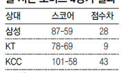 동부가 1점 뒤진 경기 종료 2.2초 전. 동부 박지현의 고공 패스를 받은 김주성이 가볍게 골밑슛을 터뜨렸다. 경기 시작 후 단 한 번도 앞서지 못했던 동부가 처음으로 리드를 잡는 순간이었다. 동부는 22일 서울 잠실실내체육관에서 열린 삼성과의 방문경기에서 김주성이 27점을 터뜨린 데 힘입어 85-84로 짜릿한 역전승을 거뒀다. 동부는 4승 1패로 선두 모비스(4승)에 이어 2위에 올랐다. 이충희 동부 감독은 “경기 초반 수비가 제대로 안 됐고 리바운드에서도 열세를 보여 고전했다. 선수들이 활발한 움직임으로 분위기를 되살렸다”고 말했다. 김주성은 9점 차로 뒤진 경기 종료 1분 52초 전 3점슛을 터뜨리며 추격의 발판을 마련하는 등 4쿼터에만 9점을 몰아 넣었다. 동부 허버트 힐은 19점을 보탰고, 이승준도 13점을 넣었다. 반면 이승준의 동생 이동준(21득점)과 제스퍼 존슨(25점)이 공격을 이끈 삼성은 경기 시작 후 39분 넘게 주도권을 잡고도 경기 막판 어이없는 실수로 4연패에 빠져 9위(1승 5패)로 처졌다. 김주성(205cm), 이승준(204cm), 힐(202cm)을 앞세운 높이가 위력적인 동부는 1쿼터에 리바운드 수에서 삼성에 1-10으로 오히려 밀렸다. 하지만 동부는 4쿼터 리바운드 수에서 10-4로 앞선 데 힘입어 승부를 뒤집을 수 있었다. 삼성은 경기 종료 29.2초를 남기고 마지막 공격에 나섰으나 김승현이 종료 10.8초 전 드리블 중 공을 흘리는 실책으로 공격권을 동부에 넘긴 게 뼈아팠다.김종석 기자 kjs0123@donga.com}