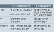 북한 최고 지도자의 첫 방남 등 숱한 파격 속에 11년 만에 이뤄진 남북 정상회담의 최대 관심사는 비핵화였다. ‘비핵화는 선대의 유훈’이라는 우회적인 언급을 거듭해온 김정은 북한 국무위원장이 문재인 대통령과 만나 직접 ‘완전한 비핵화’ 의지를 천명할 것이냐는 데 세계의 이목이 집중됐다. 두 정상은 예상보다 빠르게 합의한 ‘판문점 선언문’에 완전한 비핵화의 원칙을 담는 데 합의했다. 하지만 김정은은 공동 기자회견 등 공개석상에서 끝내 비핵화를 언급하지 않았다. 본격적인 핵 담판은 이제 막 시작했음을 보여준 것이다.○ 핵 동결 내세우며 한미 책임 강조한 北 남북 관계 발전과 군사긴장 완화 조치, 평화체제 구축 등 3개 분야에서 총 13개 항의 합의를 담은 ‘판문점 선언’에서 비핵화에 대한 남북 정상의 합의는 가장 마지막 항에 담겼다. 비핵화에 대한 두 정상의 합의는 세 개의 문장으로 구성됐다. 문 대통령이 강조한 완전한 비핵화는 “남과 북이 완전한 비핵화를 통해 핵 없는 한반도를 실현한다는 공동의 목표를 확인한다”는 첫 문장에 담겼다. 이어 두 정상은 “북측이 취하고 있는 주동적인 조치들이 한반도 비핵화를 위해 대단히 의의 있고 중대한 조치”라고 강조하고 “각기 자기의 책임과 역할을 다하기로 했다”고 선언했다. 북측이 취하고 있는 ‘주동적인 조치’는 최근 김정은이 내놓은 풍계리 핵실험장 폐쇄와 핵실험 중단 등을 의미하는 것이다. 북한의 핵 동결 조치가 ‘완전한 비핵화’를 위한 북한의 의지를 담은 것이라는 점을 부각하면서 북한은 물론 한국도 “책임과 역할을 다해야 한다”는 것. 이를 두고 일각에선 북한이 완전한 비핵화의 개념에 대한 이견을 드러낸 것 아니냐는 분석도 나온다. 비핵화를 위한 공동의 노력을 강조하면서 한미 연합 군사훈련의 중단과 한반도에 순환 배치되고 있는 미군 전략무기 철수 요구를 고수한 것 아니냐는 지적이다. 완전한 비핵화를 위한 구체적인 조치를 담지 못한 것은 예상됐지만, 아쉽다는 평가가 많다. 1992년 채택한 ‘남북 비핵화 공동선언’에서 핵 사찰에 합의했던 것과 달리 이번 합의에서는 완전한 비핵화를 위한 ‘공동의 노력’ 이상의 문구를 담지 못했기 때문. 박철희 서울대 국제대학원장은 “완전한 비핵화를 통해 핵 없는 한반도를 실현한다는 공동의 목표를 확인한 정도이지 구체적인 절차와 방법은 담겨 있지 않다”고 말했다.○ 트럼프와 담판 겨냥해 선물 남겨둔 듯 다만 1994년 제네바합의 이후 “핵 문제는 미국과 논의해야 할 사안”이라며 핵 논의에선 ‘한국 패싱’을 당연시하던 북한이 한국과의 선언문에 ‘완전한 비핵화’를 명시한 것은 성과라는 평가도 나온다. 청와대 고위 관계자는 “선언문에 완전한 비핵화라는 표현을 담은 데 주목해야 한다”며 “(비핵화에 대한) 김 위원장의 육성이 있지만, 그것은 별도 기회에 말씀드리겠다”고 말했다. 김정은이 비공개석상에서는 비핵화에 대한 의지를 분명하게 표시했다는 얘기다. 일각에선 도널드 트럼프 미 대통령과의 북-미 정상회담을 코앞에 둔 김정은이 미국과의 담판을 고려해 ‘완전한 비핵화’ 의지 표명이라는 선물을 아껴둔 것이라는 분석도 많다. 특히 북한의 완전한 비핵화가 전제되지 않으면 물거품이 될 수밖에 없는 평화협정 체결과 남북미 3자 회담 또는 남북미중 4자회담 추진을 판문점 선언에 담은 만큼 문 대통령이 김정은으로부터 어떤 식으로든 명시적인 완전한 비핵화 의지를 받아냈을 것이라는 관측도 나온다. 주중대사를 지낸 정종욱 인천대 중국학술원장은 “핵심인 비핵화가 기대보다 약하지만, 북한이 트럼프 미 대통령에게 (구체적인 비핵화 절차 등의) 선물을 안겨주기 위해 수위를 조절한 것일 수도 있다”고 말했다.문병기 weappon@donga.com·한상준 기자}