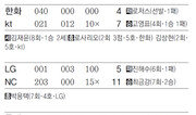 프로야구 최하위 한화가 외국인 에이스 로저스의 복귀에도 불구하고 연패를 끊지 못했다. 한화는 8일 수원구장에서 열린 kt와의 경기에서 4-7로 패하며 5연패에 빠졌다. 올해 초 스프링캠프에서 팔꿈치 통증을 호소한 뒤 정규리그에 이날 처음 등판한 로저스는 5와 3분의 1이닝 동안 9피안타(1홈런), 2볼넷, 4탈삼진에 5실점하며 패전투수가 됐다. 시작은 산뜻했다. 한화는 로저스가 1회말을 삼진 2개, 뜬공 1개로 삼자 범퇴 처리한 데 이어 2회초 로저스와 같은 도미니카공화국 출신의 외국인 타자 로사리오가 3점 홈런을 치며 4-0으로 앞서 나갔다. 그러나 kt는 2회말 곧바로 김상현이 1점 홈런을 치는 등 2점 차로 따라붙었다. 로저스는 홈런 허용 이후 2회에만 보크 2개를 기록하며 추가 실점의 빌미를 제공했다. 로저스의 보크 2개는 투수 한 명이 기록한 역대 한 경기, 한 이닝 최다 기록이다. kt는 이후 박경수의 적시타 2개 등에 힘입어 4-4로 균형을 맞추며 6회말 로저스를 마운드에서 끌어내렸다. 한화는 6회말 1사 1, 3루 위기에서 병살 플레이를 노리던 2루수 정근우가 공을 빠뜨리면서 4-5로 역전을 허용한 게 뼈아팠다. 한화는 7회말에 마무리 정우람을 투입하는 등 막판 추격을 위한 강수를 뒀지만 연패를 끊지 못했다. 마산에서는 NC가 11-5로 LG에 승리하며 구단 최다 연승 타이인 8연승을 달렸다. NC는 5-1로 앞서가다 7회초 5-5 동점을 허용했지만 7회말 1득점, 8회말 5득점하며 달아났다. 3번 타자 나성범이 3타수 3안타 2타점으로 맹활약했다. 잠실에서는 치열한 난타전 끝에 롯데가 두산에 17-11로 승리하며 주말 3연전을 쓸어 담았다. 두 팀 합쳐 올 시즌 한 경기 최다 득점(28점), 최다 안타(39개), 최다 타점(27점) 경기를 기록했다. 선두 두산은 시즌 첫 4연패에 빠졌다. 삼성은 연장 11회 접전 끝에 구자욱의 끝내기 안타에 힘입어 SK에 8-7로, 넥센은 9회말 박정음의 끝내기 안타로 KIA에 7-6으로 승리했다. 강홍구 기자 windup@donga.com}