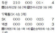 올 시즌 프로야구는 시속 150km대 불꽃 직구를 던지는 ‘파이어볼러’가 유독 많다. 하지만 LG 주키치를 빼면 대부분 성적이 신통치 않다. 국내 타자들이 150km대 강속구에 대한 적응을 마쳤기 때문이다. 한화 바티스타 등 제구력이 약점인 파이어볼러들이 고전하고 있는 이유다. KIA와 넥센의 12일 목동경기는 제구력의 중요성을 다시 한번 보여줬다. KIA 선발 소사는 평소같이 최고 구속 153km의 강속구를 던졌다. 하지만 빠른 공은 코너워크가 잘되지 않았고 가운데로 자주 몰렸다. 넥센 타자들은 작심한 듯 소사의 빠른 공을 공략해 1회에만 안타 5개를 집중하며 5점을 뽑아냈다. 소사가 2회 넥센 이택근에게 왼쪽 2점 홈런을 맞자 점수 차는 0-7까지 벌어졌다. 소사는 3이닝 동안 9안타(1홈런) 7실점하고 조기 강판됐다. 반면 넥센 선발 밴헤켄의 공은 최고 구속이 143km에 불과했지만 스트라이크존 구석구석을 찔렀다. 6이닝 동안 22타자를 맞아 공을 93개만 던졌을 정도로 완급 조절이 뛰어났다. 삼진은 1개밖에 뽑아내지 못했지만 내야 땅볼은 무려 10개나 유도했다. ‘투수의 생명은 스피드가 아닌 제구력’이라는 것을 증명하고도 남는 피칭이었다. 결국 넥센은 KIA를 13-0으로 꺾고 올 시즌 최다 점수차 영봉승을 거뒀다. 넥센 강정호는 시즌 17호 아치를 그리며 홈런 선두를 질주했다. 삼성은 대구에서 한화를 9-3으로 꺾고 다시 5할 승률(26승 26패 1무·5위)을 맞췄다. 삼성 최형우는 3점 홈런과 3루타를 포함해 4타수 3안타 6타점의 맹타를 휘두르며 승리를 이끌었다. 롯데는 사직에서 연장 12회 조성환의 끝내기 밀어내기 볼넷에 힘입어 두산을 4-3으로 잡고 단독 2위가 됐다. 선두 SK는 잠실에서 LG에 8-5의 짜릿한 역전승을 거뒀다. LG와 넥센은 공동 3위가 됐다. 유근형 기자 noel@donga.com}