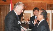 조양래 한국타이어 회장(오른쪽)이 28일 한국과 헝가리 간 교류 증진에 공헌한 공로로 슈미트 팔 헝가리 대통령으로부터 ‘십자공로훈장’을 받았다. 조 회장이 받은 십자공로훈장은 외국 민간인이 헝가리 정부로부터 받을 수 있는 훈장 중 최고 등급이다. 조 회장은 2단계에 걸친 한국타이어 헝가리 공장 증설을 통해 신규 고용 창출과 수출 증대 등 현지 경제에 기여한 점을 인정받았다. 이진석 기자 gene@donga.com}