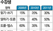 여름방학을 맞아 외국어 실력을 키우려는 수강생으로 학원가가 북적인다. 사회 환경에 따라 언어별 선호도 차이도 드러나고 있다.평창 겨울올림픽 유치 과정에서 김연아 선수와 나승연 유치위원회 대변인이 보여준 유창한 프레젠테이션 실력 덕에 영어는 말하기 강좌를 중심으로 특수를 누리고 있다.반면 동일본 대지진의 영향으로 일본어학원은 수강생이 줄어들어 울상이다. 중국어학원은 삼성이 9월부터 가산점을 주기로 하면서 성장세를 보이고 있다.○평창 특수로 영어 말하기 열풍영어학원에는 토익이나 토플 성적을 올리기보다 말하기에 대비하려는 학생이 크게 늘었다. 14일 오전 8시 서울 서초구 서초동 파고다학원은 이른 시간임에도 토익 스피킹 수강생이 많았다.한소진 씨(22·여·숭실대 글로벌 미디어학과)는 “영어로 말하는 능력이 취업에 필수적이다”라고 말했다. 김학아 씨(26·숙명여대 영문학과)는 “공인영어 점수는 일정 선만 넘으면 되므로 영어 말하기 시험을 준비하고 있다”고 했다. 이 학원 이영애 주임은 “토익 스피킹, 회화, OPIc(영어말하기능력평가) 등 말하기 관련 수업 수강생은 지난달보다 3배, 지난해보다 10배 정도 늘었다. 특히 평창 올림픽 프레젠테이션 이후에는 영어 프레젠테이션 관련 문의도 늘었다”고 말했다.기업들도 공채에서 영어 말하기 능력을 비중 있게 보는 추세다. 취업포털 잡코리아에 따르면 대기업 중 절반이 올해 신입사원 채용 시 영어면접을 치를 계획이다.삼성 포스코 LG 등은 토익 스피킹 등 영어 말하기 점수를 요구한다. 영어면접을 보는 현대자동차 인사채용팀 관계자는 “글로벌 기업은 앞으로 영어 말하기 능력 평가를 늘릴 것”이라고 했다.영어 말하기 열풍은 초중고교에도 불고 있다. 교육과학기술부가 국가영어능력평가시험을 내년부터 수시전형에 일부 활용하고 이르면 2016학년도부터 대학수학능력시험 영어 영역을 대체하겠다고 밝혔기 때문이다. 말하기는 학교에서 준비하기 힘들어 학원에서 배우려는 학생이 많다.초중고교생을 대상으로 하는 서울 강남구 대치동 GSI어학원의 말하기와 토론 강의 수강생은 2009년 15%, 2010년 40%, 2011년 50%로 해마다 늘고 있다. 반면 2009년 전체의 60%를 차지했던 토플이나 텝스 수강생은 지금은 15%에 불과하다.○일본어 지진 울상, 중국어 삼성 특혜 일본어학원들은 3월 동일본 대지진 발생 후에 어려움을 호소하고 있다. 원전사고에 따른 방사능 오염 위험 탓에 일본에 여행과 유학을 가려는 사람이 줄었기 때문이다.파고다 강남학원의 경우 수강생이 4월에는 7.4%, 5월 8.3%, 6월 10.2% 줄어드는 등 지속적인 감소세를 보인다. 서울 마포구 서교동 토토로하우스 일본어학원 관계자는 “원전사고 뒤 수강생이 40∼50명 줄었다. 일본 경기가 계속 침체된 영향도 있다”고 말했다.서초구 서초동 장수경어학원 관계자는 “과거에는 영어권에 비해 저렴한 경비 때문에 일본 유학생이 많았지만, 이제 꼭 가야 할 사람만 가는 경향이 있다”고 했다. 한 학원 관계자는 “꼭 지진 때문이 아니어도 2000년 이후 일본어 선호가 줄었다. 고교생부터 제2외국어로 일본어보다는 중국어를 택하려고 한다”고 말했다.중국어학원은 성장세다. 특히 삼성이 9월 신입사원 채용부터 중국어 특기자에게 가산점을 최대 5% 주기로 하면서 취업 준비생이 몰리고 있다.서울 종로구 관철동 르몽드어학원 관계자는 “취업을 위한 단기 수강생이 늘었다. 최근 중국 시장이 넓어지면서 이제 제1외국어가 된 것 같다”고 말했다. 서울 영등포구 여의도동 신경숙외국어학원 관계자는 “중국과 교류가 늘면서 비즈니스 회화를 배우려는 직장인이 많아졌다. 지난해 대비 30% 정도 수강생이 늘었다”고 했다.최예나 기자 yena@donga.com 염유섭 인턴기자 서울시립대 국어국문학과 4학년}