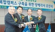 충남대 공주대 공주교대 등 대전과 충남지역 3개 국립대가 28일 오전 공주대 대학본부 3층 회의실에서 ‘통합 추진 및 세종시(행정중심복합도시) 융복합캠퍼스 구축을 위한 양해각서(MOU)’를 체결했다. 송용호 충남대 총장과 서만철 공주대 총장, 전우수 공주교대 총장은 이날 체결식에서 “구성원의 의견수렴을 거쳐 5월 31일까지 교육과학기술부에 통합계획서를 제출하고 내년 3월 1일에 통합대학을 출범시킬 계획”이라고 밝혔다. 통합에 성공하면 학생(대학원생 포함)은 4만9000여 명으로 서울대의 2만6900여 명보다 많고 교수도 1500명으로 서울대 1800명에 이어 두 번째인 매머드급 국립대가 탄생한다. 이들 대학은 3개 대학 통합추진 원칙으로 △2020년 세계 100대 명문대 진입 △통합대의 세종시 융복합캠퍼스 설립 추진 △세종시 융합캠퍼스에 세계적 수준의 융복합 관련 대학(원) 및 글로벌 교원양성대(유치원 초등학교 포함) 설치 등을 제시했다. 통합대학의 학교 이름은 지역을 초월한 대한민국 대표 국립대학을 지향하는 방식으로 하고, 캠퍼스별 특성화는 참여 대학교의 지역특성을 우선적인 고려하기로 했으며, 통합으로 인한 참여 대학의 교직원과 재학생의 불이익 없도록 하기로 했다. 가장 민감한 문제 가운데 하나인 대학본부 위치는 구성원의 의견을 더 수렴하기로 하고 이날 MOU에는 포함하지 않았다. 3개 대학 총장은 “세계적 경쟁력을 갖춘 대학으로 거듭나기 위해서는 현실에 안주해서는 안 된다는 데 의견이 일치했다”고 말했다. 이 자리에 참석한 이주호 교육과학기술부 장관은 “2004년부터 다양한 대학의 통폐합이 추진돼 왔으나 단순한 몸집 불리기였거나 대학 간 갈등이 해소되지 않은 등의 문제점이 있었다”며 “하지만 이번 3개 대학의 통합은 그동안의 문제점을 해소하고 국립대 통합의 새로운 모형을 보여줄 것으로 기대되는 만큼 교과부도 최대한 지원하겠다”고 말했다. 한편 충남대교수회는 이날 성명을 내고 “통합을 추진하면서 주요 구성원의 하나인 학생들의 의견은 수렴하지 않았다”며 MOU의 원천 무효를 주장했다. 현재 국공립대 통합은 공주대 충남대 공주교대 외에도 전북대와 전주교대, 서울대 사범대와 경인교대 등의 통합 논의가 진행되고 있다.공주=지명훈 기자 mhjee@donga.com}