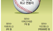 ‘프로는 돈으로 말한다’고 했다. 프로야구는 지난해 680만 관중을 돌파했다. 그 덕분에 올해 억대 연봉 선수도 112명(외국인 및 신인선수 제외 425명 대상)으로 역대 최다를 기록했다. 한국야구위원회(KBO)가 8일 발표한 ‘2012년 소속 선수 공시’ 자료에 따르면 선수 평균 연봉은 지난해보다 8.5% 오른 9441만 원이었다. 프로야구가 출범한 1982년(1215만 원)보다 677% 상승한 수치다.연봉을 가장 많이 준 구단은 지난해 한국시리즈 챔피언인 삼성. 평균 연봉 1억1768만 원으로 지난해에 비해 22.6%가 인상됐다. 지난해 SK의 평균 연봉 1억1402만 원을 깬 역대 최고액이다. 한화의 평균 연봉은 지난해보다 75.6%가 오른 9438만 원으로 최고 인상률을 기록했다. 일본에서 중도에 돌아온 김태균에게 역대 연봉 최고액(15억 원)을 주는 등 통 큰 대우를 해준 덕분이다.선수 개인으로는 LG 투수 임찬규가 지난해보다 233.3% 오른 연봉 8000만 원을 기록해 개인 최고 인상률을 기록했다. LG에서 자유계약선수(FA) 자격을 얻어 친정팀 넥센으로 돌아온 이택근은 지난해에 비해 4억3000만 원 오른 7억 원에 도장을 찍어 최고 인상 금액 신기록을 세웠다.선수들의 체격 조건도 갈수록 좋아지는 것으로 나타났다. KBO 등록선수들의 평균 키와 몸무게는 182.6cm와 84.3kg으로 프로 원년인 1982년(176.5cm, 73.9kg)보다 우람해졌다.가장 무거운 선수로는 일본 오릭스로 떠난 이대호(127kg·전 롯데) 대신 최준석(115kg·두산)이 이름을 올렸다. 최장신은 두산의 외국인선수 니퍼트(203cm), 최단신은 KIA 김선빈(165cm)이었다. KIA 이종범(42세)은 2년 연속 최고령 자리를 지켰다.유근형 기자 noel@donga.com}