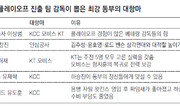 공교롭게도 나란히 간 연장 승부. 홈팬들이 모두 웃었다. 부산과 전주에서 열린 10일 프로농구 두 경기는 연장 승부 끝에 승부가 갈렸다. KT는 부산 안방에서 연장 접전 끝에 SK를 79-71로 잡았다. KT는 4쿼터 종료 직전 SK 주희정에게 66-66 동점을 이루는 골밑슛을 허용했다. 하지만 KT는 연장에서 조성민(28득점)과 박상오(23득점 10리바운드)의 정확한 중거리슛이 연달아 터지며 승리를 낚았다. 3위 KT는 시즌 28승째(17패)를 거두며 2위 인삼공사를 3경기 차로 쫓았다. 반면 8위 SK(16승 29패)는 7위 LG에 1경기 차, 6위 모비스와는 5경기 차로 벌어져 6강 플레이오프 진출에 빨간불이 켜졌다. KCC는 전주 안방에서 역시 연장 혈투 끝에 전자랜드를 101-100으로 간신히 제압했다. 시즌 26승째(20패)를 거둔 4위 KCC는 5위 전자랜드와의 승차를 2경기로 벌렸다.유근형 기자 noel@donga.com}