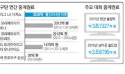 미국 프로야구 뉴욕 양키스는 1990년대 후반부터 막대한 자금력을 앞세워 좋은 선수들을 싹쓸이했다. 번번이 선수를 빼앗기던 라이벌 보스턴의 래리 루치노 회장은 2002년 말 뉴욕타임스와의 인터뷰에서 양키스를 ‘악(惡)의 제국’이라 불렀다. 양키스는 2005년 사상 처음으로 선수 연봉 총액이 2억 달러(약 2132억 원)를 넘었다. 메이저리그 사무국이 사치세(연봉 총액이 일정액을 넘긴 팀에 부과하는 세금 개념의 벌금)를 부과해도 전혀 개의치 않았다. 양키스는 1998년부터 지난해까지 15년 연속 메이저리그 연봉 총액 1위를 지키고 있다. 그런데 올해 양키스를 능가하는 새로운 ‘큰손’이 나타났다. ‘괴물 투수’ 류현진(26)을 데려간 서부지역 명문팀 LA 다저스다. 지난해 농구스타 매직 존슨 등이 인수한 다저스는 요즘 말 그대로 돈을 물 쓰듯 하고 있다. 자유계약시장(FA) 최대어 잭 그레인키(투수)를 6년간 1억4700만 달러(약 1567억 원)에 데려왔고, 류현진에게도 포스팅 입찰 금액을 포함해 6년간 6170만 달러(약 658억 원)를 투자했다. 또 1억 달러를 들여 다저스타디움을 보수하고 있다. AP 통신에 따르면 지난해 전체 선수단 연봉으로 9500만 달러(약 1013억 원)를 썼던 다저스의 23일 현재 선수단 연봉은 2억1400만 달러(약 2281억 원)를 넘어섰다. 지난해보다 2배 이상으로 늘어나 올 시즌 연봉 총액에서 양키스를 제치고 1위가 될 가능성이 크다. 다저스가 이처럼 과소비(?)를 하는 데는 믿는 구석이 있기 때문이다. 그것은 바로 현재 거의 합의 단계에 이른 중계권료. 블룸버그와 AP 통신 등 미국 현지 언론들은 23일 다저스와 지역 케이블 타임워너의 중계권료 협상이 막바지에 접어들었다고 보도했다. 금액은 당초 예상됐던 25년간 60억 달러를 넘어 70억∼80억 달러(약 7조4620억∼8조5280억 원)에 이를 것으로 추정된다. 70억 달러로 잡아도 매년 2억8000만 달러(약 2985억 원)를 받게 된다. 전체 선수단 연봉을 넘는 거액으로 올해까지 받았던 연간 중계료(4500만 달러)의 6배가 넘는다. 여기에 메이저리그 사무국이 ESPN, 폭스, 터너스포츠 등과 맺은 전국 방송 중계권료 일부를 따로 받는다. 2014년부터 3개 사와 8년간 총액 124억 달러(약 13조2184억 원)에 이르는 대형 계약을 맺은 메이저리그 사무국은 필요 경비를 제외한 금액을 매년 30개 구단에 균등분배 한다. 다저스도 연간 5000만 달러 이상 받는다. 최근 몇 년간 메이저리그의 인기 상승에 따라 중계권료가 폭등하면서 각 팀은 엄청난 수익을 올리고 있다. 이 돈 중 일부는 좋은 선수를 데려오는 데 쓰인다. 폭스와 2015년부터 20년간 16억 달러(약 1조7040억 원)에 계약한 텍사스가 다루빗슈 류를 데려오고, 역시 폭스와 17년간 25억 달러(약 2조6650억 원)에 사인한 LA 에인절스가 앨버트 푸홀스를 영입한 게 대표적이다. 양키스와 보스턴, 뉴욕 메츠 등은 아예 지역 케이블을 직접 설립해 돈을 벌고 있다. 메이저리그 전문가인 송재우 MBC스포츠플러스 해설위원은 “미국 최고의 인기 스포츠는 미식축구다. 그런데 미식축구는 일주일에 한 경기만 열리고 경기 수 자체도 적다. 이에 비해 야구는 3월부터 10월까지 매일 경기를 하고 이닝 교체 등에 수시로 광고를 할 수 있어 광고주들의 호응도 높다. 뉴욕과 로스앤젤레스, 시카고 등 큰 시장을 가진 팀들의 호황은 당분간 이어질 것”이라고 말했다. 이헌재 기자 uni@donga.com}