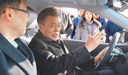 “세계 정상 가운데 고속도로에서 자율주행차를 탄 것은 제가 처음이고 세계에서 수소차로 만든 자율차는 현대차가 최초입니다.” 문재인 대통령은 2일 경기 성남시 판교 기업지원허브에서 열린 자율주행차 간담회를 시작하며 이렇게 말했다. 문 대통령은 이날 현대자동차가 제작한 수소 전기 자율주행차인 ‘넥쏘’를 타고 경부고속도로 만남의광장에서 판교 나들목까지 이르는 7km가량을 달렸다. 전날 근로시간 단축과 신규 일자리 창출에 노사가 합의한 한화큐셀 공장을 방문해 “업어주러 왔다”고 밝힌 데 이어 연 이틀 대기업을 방문해 ‘기업 기 살리기’에 나선 것이다. 문 대통령은 현대차에 대한 격려도 아끼지 않았다. 문 대통령은 “1975년 포니를 기억하시는지 모르겠다. 조그마한 차량을 드디어 생산하기 시작했을 때 자동차 생산국이 됐고 국민들이 감격했다”며 “유례없이 짧은 기간에 대한민국이 세계 6대 자동차 생산 국가로 성장했다”고 했다. 당초 대통령 경호처 등은 이번 시승 행사에 난색을 표한 것으로 알려졌다. 안전한 자율주행차 시험장이 아닌 고속도로를 운행하다 돌발 사고가 발생할 가능성을 우려해서다. 하지만 이미 여러 차례 고속도로 시험운행을 통해 안전성이 검증됐다는 얘기를 들은 문 대통령이 직접 실제 도로를 주행하겠다는 의지를 밝힌 것으로 전해졌다. 문 대통령은 “모르면 용감하다고 조심조심 갈 줄 알고 탑승해봤다”며 “그런데 고속도로 제한속도 110km에 맞춰 아주 빠르게 운행하면서 앞차와 거리를 맞추고 차선을 바꾸고 하는 것이 정말 놀라웠다”고 말했다. 문 대통령은 “자율주행차에서 좀 더 앞서갈 수 있도록 국가가 모든 노력을 다해야겠다는 굳은 결심을 하게 됐다”며 “우리가 포니 차부터 시작해서 짧은 시간에 세계적인 강국이 됐듯이 수소차, 전기차 등 미래 자동차 분야에서도 강국의 힘을 키워가자”고 밝혔다. 간담회에선 자율주행차 등에 대한 규제 완화 건의도 잇따랐다. 자동차 부품업체인 이씨스 김용범 대표는 “자율차 시범사업을 전국 국도, 전국 고속도로로 빠르게 확대해달라”고 했다. 문 대통령은 김현미 국토교통부 장관, 이인호 산업통상부 차관 등에게 “초소형 전기자동차 규제, 보조금 혜택, 여러 업체가 테스트베드를 충분히 이용할 수 있게 하는 부분은 정부가 특별히 관심을 가져달라”고 당부했다. 국토부와 산업부는 이날 전기차 급속 충전소 확대, 완전 자동 주행이 가능하도록 도로 기반시설 정비 등 미래 자동차 육성에 2022년까지 35조 원을 투자하기로 했다.문병기 weappon@donga.com·천호성 / 세종=최혜령 기자}