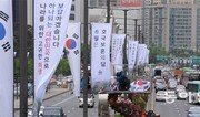 6월 호국보훈의 달을 하루 앞둔 31일 서울 송파구 올림픽로에서 구 관계자들이 순국선열의 넋을 기리는 내용의 배너와 태극기를 가로등에 걸고 있다. 안철민 기자 acm08@donga.com}