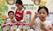 농심켈로그는 신제품 ‘리얼 그래놀라 트리플 빈’을 출시했다고 26일 밝혔다. 귀리 등을 활용한 그래놀라에 병아리콩, 검정약콩, 완두콩 등 3가지 콩이 들어가 고소한 맛을 높인 시리얼이다. 이날 서울 중구 이마트 청계천점에서 어린이 모델이 신제품을 맛보고 있다. 안철민 기자 acm08@donga.com}