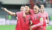 한국 축구 대표팀이 잉글랜드 프리미어리거인 황희찬(26·울버햄프턴)과 손흥민(30·토트넘)의 연속 골에 힘입어 칠레와의 평가전에서 승리했다. 100번째 A매치(국가대표팀 간 경기)를 치른 대표팀 캡틴 손흥민은 프리킥 골로 자신의 ‘센추리 클럽’ 가입을 자축했다. 한국은 6일 대전월드컵경기장에서 열린 칠레와의 A매치에서 전반 12분에 나온 황희찬의 선제골과 후반 추가시간에 터진 손흥민의 추가골로 2-0으로 승리했다. 이로써 한국은 칠레와의 역대 전적에서 1승 1무 1패로 균형을 맞췄다. 황희찬은 중원에서 정우영(23·프라이부르크)이 내준 공을 왼쪽 측면에서 받아 빠르게 몰고 간 뒤 상대 페널티지역 내 왼쪽에서 벼락같은 오른발 슛으로 상대 골문을 뚫었다. 대표팀의 6월 A매치 4경기 중 이날 칠레전까지만 뛰기로 돼 있던 황희찬이 안긴 선제골 선물이었다. 황희찬은 기초군사훈련을 받기 위해 입소하기 때문에 10일 파라과이, 14일 이집트와의 경기에는 나서지 못한다. 손흥민의 ‘센추리 클럽’ 가입 자축 골은 경기 종료 직전인 후반 추가시간에 나왔다. 황희찬이 상대 아크서클 안에서 얻은 프리킥을 손흥민이 오른발로 그림같이 감아 차 칠레 골문 오른쪽 구석에 꽂았다. 상대 골키퍼가 몸을 날리면서 힘껏 팔을 뻗어봤지만 손흥민의 슛은 이미 골라인을 넘어서고 있었다. 손흥민의 32번째 A매치 골이었다. 주장 완장을 두르고 선발 출전한 손흥민은 골을 넣은 뒤 바로 교체됐다. 손흥민이 대표팀 캡틴을 맡아 출전한 30번째 경기였다. 에두아르도 베리조 칠레 감독은 경기 후 손흥민을 두고 “수비수와 1 대 1로 상대했을 때 무서운 움직임을 보여줬다. 존재 자체로 경기를 변화시키는 선수라고 생각한다”며 높이 평가했다. 대표팀은 칠레를 상대로 2골 차의 승리를 거두긴 했지만 경기 내용은 합격점을 받기에 부족했다. 한국은 후반 8분 칠레의 알렉스 이바카체가 경고 누적으로 퇴장을 당하면서 후반 추가시간까지 약 40분간 수적 우위에서 경기를 했지만 이를 살리지 못했다. 오히려 칠레의 위협적인 슈팅을 몇 차례 허용하면서 실점 위기를 맞기도 했다. 이날 한국은 2일 브라질전에 비해선 상대 진영으로 밀고 올라가는 움직임이나 템포가 한결 나아보였지만 골문 근처에서의 패스 정확도가 많이 떨어졌다. 패스의 길이와 방향, 세기에서 어긋나는 장면이 여러 번 나왔다. 이날 대전월드컵경기장에는 4만 명의 만원 관중이 찾았다. 7일로 1주기(周忌)를 맞는 2002 한일 월드컵 4강의 주역 유상철 전 인천 감독과 3년 전 세상을 떠난 2002 월드컵 당시 대표팀 코치 핌 베어벡을 추모하기 위한 카드섹션 문구 ‘기억해 YOU’가 관중석에 펼쳐지기도 했다. 2일 한국에 5-1의 완승을 거뒀던 브라질은 6일 일본 도쿄에서 열린 일본과의 평가전에서 1-0으로 이겼다. 브라질은 네이마르(30·파리 생제르맹)가 후반 32분 페널티킥 골을 성공시켰다.대전=유재영 기자 elegant@donga.com김정훈 기자 jnghn@donga.com}