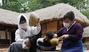 단오(端午)를 이틀 앞둔 23일 오후 경기도 용인 한국민속촌에서 시민들이 창포를 삶은 물로 머리를 감는 세시풍속을 체험하고 있다. 용인=홍진환 기자 jean@donga.com}