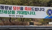 ‘파평 윤씨 35세손 윤석열 대통령 당선을 축하합니다.’ 10일 오후 윤석열 대통령 당선인의 부친 윤기중 연세대 명예교수의 고향이자 파평 윤씨 문중 마을인 충남 논산시 노성면 병사1리에는 축하 플래카드(사진) 50여 개가 곳곳에 걸렸다. 이 플래카드는 파평 윤씨 노종파 대종중회와 마을 사람들이 제작한 것이다. 윤 당선인은 1960년 서울 성북구 보문동에서 태어났지만 선거 기간 내내 ‘충청의 아들’임을 강조했다. 아버지가 이 마을에서 태어나 공주농업고등학교(현 공주생명과학고)를 다녔기 때문이다. 윤여두 파평 윤씨 종회장(75)은 “윤 당선인 조상들이 애국애족과 나눔, 정의를 실천하고 유훈으로 남겼으며 윤 당선인도 부친으로부터 그런 교육을 많이 받았다”고 설명했다. 또 “윤 당선인이 공직생활 중 ‘사람에 충성하지 않고 국가에 충성한다’고 말하고 선거 기간 정의와 상식을 약속한 것이 유훈의 영향인 만큼 꼭 실천할 것으로 믿는다”고 말했다. 당초 문중은 마을 잔치도 검토했지만 신종 코로나바이러스 감염증(코로나19) 확산세, 박빙이었던 표차 등을 감안해 취소했다. 윤여신 병사1리 이장은 “윤 당선인이 강직하신 분이니 어려운 일들을 잘 헤쳐 나갈 것으로 기대한다”며 “안보를 튼튼히 하고 민생을 잘 챙겨주기 바란다”고 당부했다.논산=지명훈 기자 mhjee@donga.com}