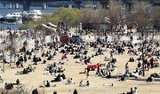 화창한 봄기온을 보인 29일 오후 서울 성동구 응봉산에 개나리가 활짝 펴올라 산을 노랗게 물들이고 있다. 최혁중 기자 sajinman@donga.com}