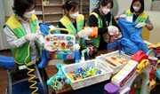 24일 오후 서울 강동구민회관에서 구청 직원들이 장난감을 소독해 포장하고 하고 있다. 강동구청은 코로나19로 집안에서 육아에 지친 가족을 위해 장난감을 집까지 배달해주는 '찾아가는 장난감 도서관 서비스'를 한시적으로 운영한다. 최혁중 기자 sajinman@donga.com}