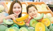 30일 서울 중구 롯데마트 서울역점에서 모델들이 국내산 ‘칸탈로프멜론’(1만900원)과 ‘머스크멜론’(6900원)을 선보이고 있다. 칸탈로프멜론은 일반 머스크멜론과 달리 속이 노란색으로 항산화 물질로 알려진 베타카로틴이 다량 함유돼 있다. 원대연 기자 yeon72@donga.com}