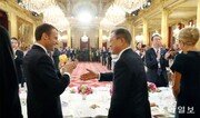 유럽을 순방 중인 문재인 대통령이 15일(현지 시간) 오후 프랑스 대통령궁인 엘리제궁의 국빈만찬장에서 에마뉘엘 마크롱 프랑스 대통령에게 악수를 건네고 있다. 프랑스 국빈방문을 마치고 이탈리아로 이동한 문 대통령은 17일 로마에서 한-이탈리아 정상회담을 갖고 바티칸 성베드로 대성당 미사에 참석한 뒤 18일 프란치스코 교황을 예방한다. 파리=원대연 기자 yeon72@donga.com}