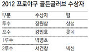 지난해 프로야구 골든글러브 시상식이 열린 12월 11일. 넥센 박병호와 서건창에게 골든글러브는 남의 얘기였다. 고작 66경기에 출전한 박병호는 하루 전 결혼식을 올리고 미국 하와이로 신혼여행을 떠났다. 서건창은 더했다. 그해 10월 테스트를 받고 팀에 합류한 서건창은 정식 선수 등록도 하지 못한 채 전남 강진의 2군 연습장에서 칼바람을 맞으며 훈련을 하고 있었다. 그로부터 정확히 1년 후인 올해 12월 11일. 그들은 ‘인생 역전’의 주인공이었다.○ 넥센 3명 배출 ‘최다’ 이날 서울 강남구 삼성동 코엑스에서 열린 골든글러브 시상식. 올해 타율 0.290에 31홈런, 105타점을 기록하며 최우수선수(MVP)에 선정된 박병호는 프로야구 기자단 투표로 진행된 골든글러브 1루수 부문에서 총 유효표 351표 가운데 275표를 얻으며 ‘황금 장갑’을 거머쥐었다. 2루수 부문 골든글러브를 차지한 서건창은 더욱 극적이었다. SK 정근우, KIA 안치홍과 치열한 경합을 벌인 서건창은 154표로 안치홍(116표)을 38표 차로 제쳤다. 그는 2006년 류현진(LA 다저스) 이후 6년 만에 신인왕과 골든글러브를 동시에 차지한 선수가 됐다. 그는 “재작년 이맘때 군대에서 보초를 서며 골든글러브를 타는 상상을 수없이 했다. 상상만 했을 때는 어떤 기분인지 잘 몰랐는데 직접 상을 타보니 다른 수상자가 왜 우는지 이해할 수 있겠더라”고 말했다. 넥센은 유격수 부문 골든글러브를 차지한 강정호까지 더해 8개 구단 중 가장 많은 3명의 골든글러브 수상자를 배출했다.○ 손아섭, 313표로 최다득표 가장 치열한 경쟁이 펼쳐졌던 투수 부문에서는 삼성의 왼손 에이스 장원삼(128표)이 넥센의 나이트(121표)를 불과 7표 차로 제치고 생애 첫 황금 장갑의 주인공이 됐다. 8년간의 일본 생활을 접고 올해 국내에 복귀한 삼성 이승엽은 지명타자 부문에서 9년 만에 골든글러브를 다시 받았다. 통산 8번째 골든글러브를 수상한 이승엽은 한대화, 양준혁과 최다 수상 타이를 기록했다. 3명을 뽑는 외야수 부문에서는 손아섭(313표·롯데), 이용규(199표·KIA), 박용택(194표·LG)이 나란히 황금 장갑을 차지했다. 313표를 얻은 손아섭은 득표율 89.2%로 최다 득표의 영광도 안았다. 포수 부문은 롯데 강민호, 3루수 부문은 SK 최정의 차지였다. 특별 부문인 페어플레이상은 박석민(삼성)이 차지했고 사랑의 골든글러브와 골든포토상은 각각 김태균(한화)과 김광현(SK)에게 돌아갔다. 골든글러브 수상자에게는 제트에서 제공하는 300만 원 상당의 글러브와 가방, 100만 원 상당의 나이키 상품권이 부상으로 수여됐다.조동주·이헌재 기자 djc@donga.com}