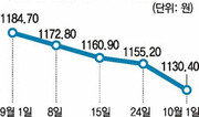 미국 중국 일본의 환율전쟁이 고조되는 가운데 원-달러 환율이 1140원대가 무너지며 하락 압력을 계속 받고 있다. 전문가들은 당분간 환율 하락(원화가치 상승)이 불가피하지만 1100원 선까지는 한국 경제에 큰 영향이 없을 것으로 보고 있다. 1일 서울 외환시장에서 원-달러 환율은 전일 종가보다 9.8원 떨어진 1130.4원에 마감했다. 5월 13일 1128.00원(종가 기준) 이후 가장 낮은 수준이다. 한 달 만에 54.3원이 내렸고, 연중 최고치인 5월 26일 1253.3원보다 122.9원 떨어졌다. 외환시장 관계자는 급락 이유에 대해 “무역수지 대규모 흑자 소식에 역외 투자자들이 달러를 앞다퉈 팔았으며 외환당국의 개입 정도가 생각보다 약했던 것으로 보인다”고 말했다. 하락압력이 강해지며 환율이 주요 20개국(G20) 정상회의가 열리는 11월 전에 1100원으로 내려갈 것이라는 전망이 나온다. 그간 한국은 경기회복 속도가 빠른 편이었고 다른 통화에 비해 원화가치가 낮게 평가됐기 때문에 연내 1100원에 접근할 것이라는 예측이 많았다. 그럼에도 미국과 중국 환율전쟁 흐름 속에 지난 4일간 굳건히 1140원대를 지탱해왔다. 이는 외환 당국에서 소폭씩 외환시장에 개입해 ‘속도 조절’을 꾀했기 때문으로 보인다. 외환시장의 한 관계자는 “외환당국의 관리는 환율 하락을 막는 차원이 아니라 하락 흐름을 점진적으로 이끄는 ‘속도 조절’의 취지”라고 말했다. 환율 변동 폭이 커지면 수출 의존도가 높은 국내 기업에 큰 혼란을 줄 수 있기 때문이다. 하지만 외환당국이 적극적으로 개입하기는 어려울 것으로 보인다. G20 의장국으로서의 역할 때문에 강한 자국 통화 보호조치는 부담스러운 탓이다. 환율이 1100원에 접근하더라도 한국 경제에 큰 타격은 없을 것이라는 것이 중론이다. 정미영 삼성선물 팀장은 “환율이 1100원이 되더라도 한국 기업들이 감내할 수 있는 수준으로 보고 있다”며 “원화는 아직 엔화 등보다 저평가돼 이득을 보고 있다”고 설명했다.조은아 기자 achim@donga.com}