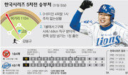 “가끔 우리 애들이 무섭다는 생각이 들어요.”프로 18년차 베테랑 최동수는 요즘 5년 연속 한국시리즈에 진출한 SK 야구의 진수를 온몸으로 만끽하고 있다. 지난 시즌 중 LG에서 SK로 트레이드된 그는 올해가 SK 유니폼을 입고 뛰는 첫 포스트시즌이다.KIA와의 준플레이오프 1차전에서 패한 뒤 그는 동료들에게 크게 놀랐다. 힘 한 번 못 쓰고 졌지만 어떤 선수도 흔들리지 않았다. 최동수는 “힘들겠다고 생각한 건 나밖에 없었다. 경험 많은 선수들은 모두 승리를 확신했다”고 했다. SK는 결국 준플레이오프에서 KIA를 넘었고, 플레이오프에서는 롯데까지 제쳤다.한국시리즈에서 SK는 또다시 위기를 맞았다. 삼성과의 1, 2차전에서 내리 간발의 점수 차로 진 것이다. 3차전을 앞두고 인천 문학구장에서 만난 최동수는 담담하게 선수단 분위기를 전했다. 그는 “선수들은 앞으로 두 번 더 지기 전에 네 번 먼저 이기면 된다고 말한다. 패배 속에도 여유가 있다. 위기에서 더 강해지는 팀이 있다면 그게 바로 SK다”라고 했다. 지난해까지 28번 열린 한국시리즈에서 먼저 2번을 지고 우승한 경우는 딱 한 번 있었다. 2007년의 SK가 바로 그 주인공이었다. 시즌 평균자책 1, 2위를 기록한 두 팀의 대결답게 이날도 팽팽한 투수전이 펼쳐졌다. 필승 불펜을 보유한 두 팀이다 보니 선취점을 내는 팀이 절대적으로 유리한 상황. 먼저 기회를 잡은 건 삼성이었다.3회 SK 선발 투수 송은범이 흔들리는 틈을 타 1사 만루의 찬스를 만들었다. 그러나 3번 타자 채태인과 4번 타자 최형우가 연속 삼진으로 물러나고 말았다. 4회 초 공격에선 2사 2루에서 진갑용의 좌전 안타 때 2루 주자 강봉규가 홈으로 쇄도했으나 좌익수 박재상의 정확한 홈 송구에 걸려 득점에 실패했다. 박재상은 곧 이은 4회 말 공격 1사 후 주자 없는 상황에서 삼성 선발 저마노의 한가운데 높은 직구를 좌월 홈런으로 연결시키며 팽팽하던 0의 균형을 깼다. 최동수도 1-0으로 앞선 5회 1사 후 주자 없는 상황에서 저마노의 높은 공을 끌어당겨 왼쪽 스탠드에 꽂히는 쐐기 1점 홈런을 쳐냈다. 포스트시즌 역대 최고령(40년1개월17일) 홈런이었다. SK는 6회 이후 이승호(20번) 정대현 정우람 엄정욱으로 이어지는 필승 불펜을 앞세워 2-1로 1점차 승리를 따내며 시리즈 전적 1승 2패로 반격의 발판을 마련했다. 선발 등판해 5이닝을 4안타 4볼넷 무실점으로 막은 송은범은 3차전 최우수선수(MVP)로 선정됐다. 두 팀의 4차전은 29일 오후 2시 같은 장소에서 열린다. 인천=이헌재 기자 uni@donga.com 유근형 기자 noel@donga.com ▼“선발 송은범 호투 고마워”▼▽이만수 SK 감독 대행=선수들이 불굴의 투지를 보여줬다. 실투를 놓치지 않고 홈런으로 연결한 것이 승인이다. 송은범은 몸 상태가 좋지 않았음에도 호투했다. 포수 정상호가 4회 블로킹을 못했으면 경기는 넘어갔다. 박재상이 홈 송구를 잘했지만 바운드가 무척 까다로웠다. 정상호는 대한민국 최고다. 허리 무릎 골반 등 안 아픈 곳이 없지만 한 번도 내색하지 않았다.▼“3회 2사 만루 삼진 아쉬워”▼▽류중일 삼성 감독=찬스 때 적시타가 나오지 않아 잔루가 많았다. 3회 2사 만루에서 나온 삼진과 4회 도루 실패가 두고두고 아쉬웠다. 타자들이 정규시즌보다 컨디션이 조금 떨어져 있기 때문에 자신 있게 쳐야 한다. 오늘 테스트한 정인욱 배영수의 구위가 좋아 만족한다. 필승조를 아꼈으니 4차전은 총력전을 펼치겠다.}