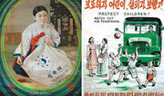 1950년 인쇄된 교통안전포스터. ‘보호하자 어린이, 살피자 보행자’라는 문구는 여느 교통안전 포스터와 같지만 아래쪽에 들어간 문구가 색다르다. ‘교통안전 강조 운동은 미군과 한국 정부가 공동으로 하고 있는 공익사업의 하나이다.’ 포스터에는 군용 트럭 앞에서 아이들이 공놀이를 하는 모습이 그려져 있다. 광복 직후 시대상을 고스란히 보여주는 것이다. 9월 13일까지 서울 중구 신당동 동대문역사문화공원 이벤트홀에서 ‘한국포스터디자인백년전’이 열린다. 1900년대부터 2000년대까지 포스터 140여 점을 통해 한국 포스터 디자인 변천사와 포스터에 담긴 시대상을 한눈에 볼 수 있는 자리다. 1870년대부터 국내에서도 포스터가 제작되기 시작했다. 20세기 초 제작된 고종황제 존영은 족자 위에 고종황제의 초상화를 그려 넣은 형태다. 본격적인 포스터가 제작되기 전 모습을 짐작할 수 있다. 일제강점기 포스터는 주로 상품 판촉용이었다. 구상적 형태에 여성이 모델로 등장하며 위아래에 ‘쫄대’를 대 오랫동안 게시할 수 있도록 제작했다. 이 시기 포스터 중에는 특히 운보 김기창이 직접 도안해 1937년 제작한 크리스마스실 포스터가 눈길을 끈다. 팽이 치는 소년의 모습과 함께 크리스마스실의 유래와 의미를 설명하는 문구도 들어가 있다. 광복 이후 포스터에는 주로 당시 사회상을 반영한 계몽적인 내용이 많았다. 1950년대 육군본부에서 제작한 포스터에는 ‘잊지 말자, 피에 젖은 6·25’라는 문구가 새겨져 있다. 1950년대 한미연합군 안전포스터에는 ‘우리는 전쟁에서 같이 싸왔으니 평화 시에도 같이 건설하자’고 적혀 있다. 총을 든 군인이 나란히 서 있고 배경에는 전투 장면과 건물 건설 장면을 함께 그려 넣었다. 1960년대 후반부터는 경제 성장과 함께 디자인 전문회사가 생기면서 포스터가 세련되어지기 시작했다. 특히 1969년 제작한 대한석유공사 유공스페샬 홍보포스터는 손으로 그리던 기존 포스터 제작방식에서 탈피해 유니폼 입은 여성의 사진을 전면에 내세웠다. 1970년대 후반부터 1980년대까지는 한국적 정체성에 주목해 탈이나 호랑이, 미륵반가사유상 등 한국 전통을 살린 포스터가 많이 제작됐다. 이후 1990년대와 2000년대를 거치며 추상적이고 기하학적 형태, 보편적 가치를 추구하는 내용이 많아진다. 9월 6일 오후 4시에는 박암종 근현대디자인박물관장, 백금남 성균관대 교수 등이 강연자로 나서 ‘포스터, 시대를 그려내다’를 주제로 강의를 진행한다. 무료. 02-2266-7188이새샘 기자 iamsam@donga.com}
