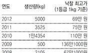 명품송이, 황금송이로 불리는 강원 양양송이 수확이 마무리됐다. 지난달 송이 수확 초기에는 예년에 비해 많은 송이가 채취되면서 지역 주민들을 들뜨게 했지만 흉작을 면한 정도의 실망스러운 생산량을 기록했다. 송이 수확철을 앞두고 기온이 뚝 떨어진 데다 비가 자주 내려 송이 생육에 적합한 여건이었지만 본격적인 수확기에 들어서는 고온 현상이 지속됐기 때문인 것으로 농민들은 보고 있다. 10일 공판을 마감한 양양송이영농조합법인에 따르면 올해 생산량은 5000kg으로 흉작이었던 지난해 3525kg에 비해 41% 증가했다. 그러나 대풍이던 2010년 1만4354kg에 비해서는 3분의 1 수준에 그쳤다. 이인모 기자 imlee@donga.com}