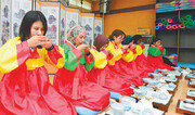 대구보건대 글로벌인재양성캠프에 참가한 외국인 대학생들이 19일 칠곡향교에서 차(茶) 예절을 배우고 있다. 중국 태국 등 11개국 학생 30여 명이 전통 문화를 배우는 이번 캠프는 21일까지 계속된다. 대구보건대 제공}