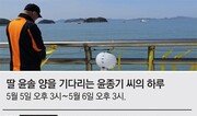 그날 이후 아빠의 눈가는 항상 젖어 있었다. 막내딸 솔이(17)가 탔던 세월호가 전남 진도 앞바다에 침몰한 지난달 16일. 악몽에 쫓겨 오듯 내려온 진도에 머문 지 6일로 21일째가 됐다. 윤종기 씨(49)는 진도에서 언제 올지 모르는 딸을 하염없이 기다리고 있다. 5일 오후 윤 씨는 진도 실내체육관 1층에 앉아 있었다. 어젯밤 꿈에 솔이가 나왔다. 누군가 택시를 타고 집 앞에 와 솔이를 내려놓고 갔다. 허겁지겁 뛰어나가 보니 몸은 분명 솔이가 맞는데 얼굴은 솔이의 둘째 언니였다. 솔이는 두 언니 아래로 얻은 막내딸이었다. 깨어난 뒤에도 한참 동안 꿈이 잊혀지지 않았다. ‘이제 얼굴이 온전치 않아 보여주고 싶지 않았던 걸까….’ 오후 3시경 정홍원 국무총리가 체육관을 방문했다. 실종자 가족들에게 수색 상황을 설명하는 브리핑 중간, 윤 씨는 1층 상황실을 박차고 나왔다. 매일 같은 이야기만 반복됐다. 화가 났지만 솔이를 찾으려면 수색이 어떻게 진행되는지 알아야만 했다. 10분 뒤 감정을 추스르고 다시 상황실로 들어갔다. 오후 6시 40분경 지친 가족들과 배식봉사를 하는 천막을 찾았다. 밥 한 숟가락, 김치 두 젓가락을 먹고 수저를 내려놓았다. 사고 며칠 전 솔이는 아빠에게 계란말이를 해달라고 졸랐다. 일을 마치고 피곤했기에 다음에 해주겠다며 미뤘다. 사고 후 그날 일을 얼마나 후회했는지 모른다. 윤 씨는 체육관 앞마당에 마련된 전광판에서 나오는 뉴스를 보며 담배를 피워 물었다. 저녁 내내 세월호 도면만 들여다봤다. 해경 측에서 나눠준 A4 크기의 도면. 침몰하는 배에서 솔이를 마지막으로 본 친구는 3층 출구에서 헬기 구조를 기다리는 줄 마지막에 솔이가 서있었다고 했다. ‘평소 정의감이 강했던 딸이 위급한 상황에서 친구들에게 양보하고 마지막에 섰던 것 아닐까.’ 윤 씨는 수학여행을 떠나는 솔이의 얼굴을 보지 못했다. 솔이가 떠나는 아침, 화장실에 있었기 때문이다. “아빠, 나 간다.” 딸은 문 너머에서 해맑게 인사했다. ‘그때 그 문을 열어 얼굴을 봤어야 했는데….’ 다시 만날 딸의 얼굴이 온전치 못해 알아보지 못할까 윤 씨는 무섭다. 오후 9시 16분경 체육관에 누워 있다가 벌떡 일어났다. 무대에 설치된 대형 TV에서 사고 당시 사진과 동영상이 나왔다. 영상 공개가 끝나자 조용히 밖으로 나왔다. 솔이와 같은 반이던 단원고 학생의 아버지가 먼저 나와 있었다. “해경에서 탈출하라고 한마디만 했어도 우리 애들 다 살았을 텐데….” 두 아버지는 한숨만 내쉬었다. 단원고 선생님들이 찾아왔다. 함께 솔이 이야기를 하고 난 윤 씨는 다시 밖으로 나왔다. “항상 반에서 5등 안에 들더니 나타나는 건 끝에서 5등 안에 들어가려고 이렇게 안 나오나.” 자정을 넘겼지만 윤 씨는 잠들지 못했다. 6일 0시 45분경 정조시간이 돼 수색이 재개됐는지 보기 위해 체육관 상황실을 찾았다. 추가로 발견된 시신은 없었다. 자리에 돌아와도 잠이 오지 않아 스마트폰으로 뉴스만 계속 검색했다. 오전 2시쯤에야 겨우 자리에 누웠다. 애써 잠을 청해보지만 쉽지 않다. 체육관에 늘어난 빈자리를 보는 마음이 휑하다. 일부러 자원봉사자들에게 옆에 놓인 빈 이부자리들을 치우지 못하게 했다. 한 시간 뒤에야 겨우 잠이 들었다. 오전 7시 30분경 눈을 뜨자마자 수습된 시신들의 인상착의를 적은 종이가 붙은 게시판으로 갔다. 밤사이 추가로 수습된 시신은 없다는 걸 확인한 뒤 세수를 했다. 아침식사 대신 인스턴트커피를 한 잔 마시며 TV 뉴스를 봤다. 멀리서 헬기 소리가 들려왔다. “아침부터 안산 가나 보네. 참… 부럽네….” 윤 씨는 팽목항으로 나갔다. 오전 9시에 있을 브리핑을 챙기기 위해서다. 오후에 체육관에서 똑같은 내용을 브리핑하지만 한시라도 빨리 수색 소식을 알고 싶었다. 이날 오전 수색에 참여한 민간 잠수사가 사망하는 사고가 있었다. 브리핑을 듣던 윤 씨의 마음이 불안하게 뛰었다. 팽목항 등대로 이어진 길가에는 실종자들의 무사귀환을 바라는 노란 리본이 달려 있었다. 며칠 전 윤 씨가 직접 쓴 리본도 있었다. ‘솔, 아빠가 항상 미안해 힘이 없어! 계란말이 해줄게 빨리 나와’ ‘아빠는 솔 사랑하는데 솔 보고 싶은데 어서 와라 사랑해 -솔 아빠가-’라고 쓴 리본이 바람에 흔들렸다. 체육관에 돌아온 뒤 윤 씨는 자리에 누워버렸다. 오후 내내 누웠다가, 뉴스를 보다가, 밖에 나가 담배 피우기를 반복하다 오후 3시가 되자 자리에서 일어섰다. 체육관 브리핑이 시작될 시간이다. 그는 어김없이 상황실로 발걸음을 옮겼다.진도=박성진 기자 psjin@donga.com}