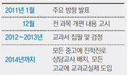 같은 고등학교에 다녀도 희망하는 진로에 따라 학생이 배우는 내용이 달라진다. 영어와 수학 교과서는 실력에 맞춰 상중하 가운데 하나를 고르면 된다. 초등학생과 중학생은 공부하는 분량이 지금보다 20% 줄어든다. 이런 내용은 2014학년도에 초등학교 1·2학년, 중학교와 고등학교 1학년부터 적용한다. 교육과학기술부가 마련해 24일 발표한 ‘2011 교과 교육과정 개정 방향’의 주요 내용이다.○ 선택폭↑ 과목 수↓ 문·이과 구분은 1997년 제7차 교육과정 개편 때 사라졌지만 일선 고교에서는 관행적으로 나눠서 운영했다. 앞으로는 학생의 수준과 진로에 맞는 과목을 선택해 들을 수 있다. 교과부 관계자는 “맞춤형 교육 과정을 운영하려면 학교 인프라를 구축해야 하는데 지금까지는 그게 안 됐다. 어떤 과목을 들을지는 2013년 모든 학교에 배치하는 진로상담교사가 학생에게 얘기한다”고 설명했다. 예를 들면 이렇다. 수학의 경우 지금은 일반고 학생들이 배우는 보통 과목(수학, 수학의 활용, 수학Ⅰ, 수학Ⅱ 등)과 주로 과학고교생들이 배우는 전문과목(고급수학)으로 구분돼 있지만 2014학년도부터는 기본(기초수학), 일반(수학Ⅰ, 수학Ⅱ, 미적분Ⅰ, 미적분Ⅱ 등), 심화(고급수학Ⅰ, 고급수학Ⅱ)로 바뀐다. 상경계열에 가려는 학생에게는 진로상담교사가 다른 인문계 학생보다 어려운 수학 과목을 선택해 듣도록 조언한다. 이 학생은 수학시간에 심화수학 과목 수업을 하는 교실에서 수업을 들으면 된다. 기초수학은 중3 수학 정도에 해당하는 수준으로 일반 수학 과목을 따라가기 힘든 학생이나 전문계고 학생들이 선택할 수 있다. 다른 과목도 마찬가지. 과학에 소질이 있는 일반계고 학생은 자기 학교에서 과학고 수준의 수업을 들을 수 있다. 예체능계 지망 학생은 필수 과목만 이수하고 나머지 수업 시간은 실기 관련 과목을 선택하면 된다. 전체 과목 수가 늘어나지는 않는다. 지나치게 세분됐거나 내용이 겹치는 과목, 학생이 거의 선택하지 않는 과목은 통폐합된다. 교과부는 고교의 선택과목 수를 261개에서 198개로 줄일 방침이다. 이에 따라 고1 때 배우던 사회 도덕 과목 내용은 중3 과정으로 넘기거나 ‘법과 정치’ 같은 다른 고교 과목에 포함된다. 고1 과정이 국민 공통 교육 과정에서 빠졌기 때문에 ‘공통 교육’ 성격이 강한 과목을 없애기로 했다.○ 대학 입시는 어떻게? 학생의 선택폭을 늘린 이유를 교과부는 “대학의 계열별 전형방안 다양화 등 향후 학교 교육과 대학 입시의 연계 강화를 고려했다”고 설명했다. 지금까지는 학교 교육만 갖고 자기만의 장점을 내세우기가 쉽지 않았다. 앞으로는 선택 과목 자체가 학생의 특성을 보여 준다. 게다가 2014학년도부터 새로운 대학수학능력시험을 도입하면 수능의 비중이 입시에서 줄어든다. 이번 개편으로 입학사정관 제도가 주요 대입 전형으로 자리 잡는 토대를 마련한 셈이다. 이주호 교과부 장관은 차관 시절 “초중고교 교육부터 바꾸고 대입 제도를 나중에 손질하는 게 맞지만 대입 제도가 그대로 있으면 학교 현장이 변화를 따르려 하지 않을 것이다. 그게 입학사정관제 정착이 중요한 이유”라고 말했다. 내신 절대평가 논의도 다시 시작할 개연성이 높다. 과목마다 선택 학생 수가 다르면 내신산출에 문제가 생긴다. 교과부는 선택 학생 수가 35명 미만인 과목은 이수 또는 미이수로만 평가할 계획이다. 과목별 성취 수준을 명확하고 구체적으로 명시해 과목에 따른 유·불리 문제를 없앤다는 것이다.○ 공부량↓ 창의활동↑ 초등학교와 중학교 교과서의 내용이 20% 정도 줄어든다. 교과부는 다른 학년 또는 과목 간에 겹치는 내용만 빼도 이 정도는 줄일 수 있다고 내다본다. 실제로 중1 사회 ‘국가별 기후 특징’과 중3 과학 ‘기상’에 겹치는 부분이 너무 많다는 지적이 계속됐다. 교과 내용이 줄어드는 만큼 창의적 재량 활동 시간은 늘어난다. 책상에 앉아 교과서를 갖고 하던 수업 방식이 직접 보고 만지고 느끼는 형태로 변한다. 아이들이 학교를 즐거운 곳이라고 느끼도록 만들자는 취지에서다. 교육과정 개발 및 검토 단계에는 학습연구년제 교사 등 현장 교원을 많이 참여시키기로 했다. 지금까지는 대학교수가 교과서 집필을 주로 맡아 책의 내용이 학교현장과 거리감이 있다는 지적이 많았다. 교과부는 연말까지 과목별 개편 내용을 마련한 뒤 2013년 말까지 교과서 집필 및 검정을 마무리할 계획이다.황규인 기자 kini@donga.com최예나 기자 yena@donga.com}
