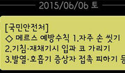 국민안전처가 메르스를 조심하라며 6일 ‘긴급재난문자’(사진)를 보내 ‘뒷북’ 비난을 받고 있다. 첫 메르스 확진자가 발생(지난달 20일)한 지 17일 만에 문자를 보낸 데다 내용마저도 ‘손 자주 씻기’ 등 익히 알려진 내용이었다. 6일 오전 11시 30분경 안전처는 메르스 예방수칙으로 △자주 손 씻기 △기침·재채기 시 입과 코 가리기 △발열·호흡기 증상자 접촉 피하기 등이 담긴 긴급재난문자를 4세대(4G) 이동통신 가입자 및 일부 3G 가입자에게 보냈다. 재난 및 안전관리 기본법의 관련 규정에 따라 국민에게 메르스 예방을 위한 위생을 강조하기 위해서다. 안전처 관계자는 “한풀 꺾일 것이라는 바람과 달리 5, 6일 확진환자가 늘어나 문자를 보내기로 결정했다”며 “사태 초기부터 문자를 보내면 불안감을 조성한다는 반응이 나올 수 있어 신중하게 타이밍을 정했다”고 설명했다. 문자에 기초적인 내용만을 담은 건 문자 수가 60자로 제한돼 있기 때문이라고 덧붙였다. 하지만 인터넷에는 “이미 며칠 전부터 모두가 아는 얘기를 긴급재난문자로 보냈다. 한심하다”거나 “이제야 정부가 일을 하고 있는 듯해 안심이 된다”는 냉소적인 반응이 쏟아졌다. 박은서 clue@donga.com·강홍구 기자}