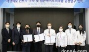 대웅제약이 아피셀테라퓨틱스, 서울대학교병원과 재생의료 및 첨단바이오의약품 분야 협력을 추진한다.대웅제약과 아피셀테라퓨틱스는 서울대학교병원과 재생의료 인프라 구축 및 첨단바이오의약품 임상연구 협력을 위한 업무협약(MOU)을 맺었다고 8일 밝혔다. 아피셀테라퓨틱스는 대웅제약과 영국 아박타가 함께 만든 조인트벤처다. 대웅제약 줄기세포 플랫폼(DW-MSC)과 아박타 아피머(Affimer) 기술을 융합해 유효성을 높인 차세대 세포치료제 개발을 진행 중이다.이번 MOU에 따라 3개 업체는 국내외 연구과제 유치를 위한 상호협력과 지식재산 발굴, 보존 및 산업화를 위한 협력, 세계 수준 경쟁력을 갖춘 재생의료 인프라 구축 및 첨단바이오의약품 임상연구개발 상호협력, 연구개발, 기술교류 관련 정보제공 및 컨설팅, 연구인력 교육 및 상호 교류 등 협력이 필요한 다양한 분야에서 상호 협력을 추진하기로 했다.이번 협력을 계기로 대웅제약과 아피셀테라퓨틱스는 그동안 전개했던 첨단바이오의약품 개발사업에 속도가 붙을 것으로 기대하고 있다. 대웅제약은 작년 식품의약품안전처로부터 허가를 받고 첨단바이오의약품 위탁개발·생산 사업에 진출한 바 있다. 전승호 대웅제약 대표는 “제약·의료분야 대표 미래 산업인 재생의료와 첨단바이오의약품 분야에서 국내 최고 의료기관인 서울대학교병원과 협력할 수 있어 든든하다”며 “이번 MOU를 계기로 연구개발에 한층 매진해 국민 삶의 질 향상에 기여할 수 있도록 최선을 다할 것”이라고 말했다.동아닷컴 김민범 기자 mbkim@donga.com}