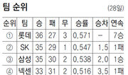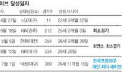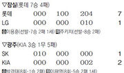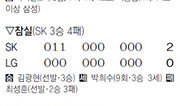LG로선 이기고 지는 게 문제가 아니었다. 단 한 명의 선수라도 1루 베이스를 밟을 수 있느냐가 관건이었다. 24일 LG와 롯데의 잠실 경기. 롯데 선발 이용훈의 투구는 눈부셨다. 7회까지 21타자를 상대로 7개의 삼진을 잡으며 퍼펙트 행진을 이어갔다. 프로야구 31년 역사상 첫 1군 경기 퍼펙트게임이 나올지에 모든 사람의 이목이 집중됐다. 이용훈은 한국 프로야구에서 퍼펙트게임을 거둔 유일한 선수다. 그는 지난해 9월 17일 대전구장에서 열린 한화 2군과의 경기에서 111개의 공으로 27타자를 완벽하게 틀어막았다. 7회까지 투구 수는 86개밖에 되지 않았다. 3-0으로 앞선 8회 선두 타자 정성훈을 유격수 뜬공으로 처리하면서 퍼펙트게임은 현실이 되는 듯했다. 하지만 다음 타석에 들어선 LG 베테랑 최동수의 벽을 넘지 못했다. 초구에 포수 강민호가 요구한 공은 커브. 그렇지만 이용훈은 슬라이더를 고집했다. 최동수는 초구 슬라이더가 한가운데로 몰리자 이를 가볍게 잡아 당겨 좌익수 앞 안타로 연결했다. 대기록이 깨진 허탈함에 이용훈은 오지환과 윤요섭에게 각각 안타를 허용하며 실점까지 했다. 그렇지만 계속된 2사 1, 2루에서 대타 이병규(등번호 9번)를 1루수 앞 땅볼로 유도하며 위기에서 벗어났다. 직전 LG와의 2경기에서 모두 9회 이후 극적인 역전승을 거둔 롯데는 이날 이용훈의 호투를 발판 삼아 LG를 7-1로 꺾고 최근 4연승 행진을 이어갔다. 반면에 롯데와의 주말 3연전을 모두 내준 LG는 올 시즌 처음으로 5할 승률 아래(30승 2무 31패)로 떨어졌다. 두산은 대전에서 3개의 홈런을 몰아친 윤석민(3회 2점, 5회 1점, 연장 10회 1점)의 맹타에 힘입어 한화에 8-7로 이겼다. 부상에서 복귀한 한화 에이스 류현진은 3이닝 동안 홈런 2개를 포함해 5안타 4실점한 뒤 강판됐다. KIA는 광주에서 9회말 1사 만루에서 나온 SK 최윤석의 끝내기 실책을 틈타 2-1로 역전승했다. 넥센은 목동에서 4-5로 뒤진 연장 10회말 1사 1, 3루에서 정수성의 끝내기 2타점 2루타로 삼성에 6-5로 승리했다.이헌재 기자 uni@donga.com 조동주 기자 djc@donga.com}
