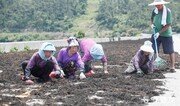 30일 전남 진도군 조도면 가사도에서 지역 특산품인 ‘톳’을 바다에서 수확한 뒤 햇살 아래에서 건조 작업을 하고 있다. 해외 수출을 많이 하는 해조류인 톳은 5월부터 수확을 시작해 7월 초까지 진행된다. 박영철 기자 skyblue@donga.com}