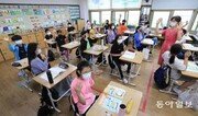 코로나19의 영향으로 5일 오랜만에 등교한 광주 광산구 월곡초등학교 학생들이 교실에서 선생님과 함께 손을 흔들며 인사하고 있다. 광주시교육청에 따르면 이날부터 시내 중학교 92곳 중 76곳, 고등학교 68곳 중 51곳이 전면 등교를 시작했다. 광주=박영철 기자 skyblue@donga.com}