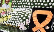 4일 장애인으로는 처음으로 히말라야 8000m급 14개 봉우리 등정에 성공한 뒤 브로드피크(8047m)에서 하산하던 중 실종된 산악인 김홍빈 대장의 분향소에 체육훈장 청룡장이 놓여 있다. 황희 문화체육관광부 장관은 이날 광주 서구 염주종합체육관에 마련된 김 대장의 분향소를 찾아 김 대장의 업적을 기리며 청룡장을 추서했다. 영결식은 8일 오전 10시에 진행된다.광주=박영철 기자 skyblue@donga.com}