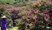 5일 전남 담양군 고서면 조선 중기 지어진 명옥헌(鳴玉軒)의 숲 앞. 한 방문객이 흐드러지게 핀 배롱나무 숲을 사진에 담고 있습니다. 옛부터 선비들과 사찰 스님들이 특히 사랑하는 나무이기도 합니다.100일 동안 꽃이 피고 진다고 해서 목백일홍(木百日紅)이라고도 불리는 이 나무는 8월부터 붉음이 절정에 달합니다. 명옥헌 정원은 바로 옆 소쇄원과 더불어 아름다운 조선시대 민간정원으로 사랑받고 있습니다.담양=박영철기자 skyblue@donga.com}