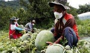 입추가 지난 12일 광주시 북구 무등산 자락 금곡마을 농장.당도가 높고 감칠맛이 더한 수박으로 이름 난 무등산 수박을 첫번째로 수확하고 있습니다.마을에서 '푸랭이'라고 불리는 이 수박은 보통 20kg이 넘고 큰 것은 40kg까지 가는 초대형 과일입니다.현재 9농가 2.6㏊에서 생산되고 있으며 올해는 지난해 1700여 통 보다 많은 2000~2500여 통이 수확 예정입니다.여름 끝무렵인 15일 전후 수확을 시작해 10월 중순까지 판매합니다.광주=박영철 기자 skyblue@donga.com}