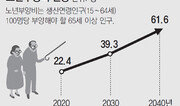 2040년이면 65세 이상 고령층이 인구의 3분의 1을 차지하면서 국민들의 노년층 부양 부담이 현재의 3배 가까이로 늘어날 것으로 전망됐다. 또 내년부터 내국인은 인구 감소가 시작되는 반면 외국인, 이민 2세 등의 인구는 계속 늘어 20년 뒤 350만 명을 넘어설 것으로 예상됐다. 통계청은 13일 이런 내용의 ‘내·외국인 인구전망(2017∼2040년)’을 발표했다. 인구추계를 바탕으로 내국인, 외국인 인구전망을 따로 내놓은 건 처음이다. 이에 따르면 내국인의 노년부양비는 올해 22.4명에서 20년 뒤인 2040년에는 61.6명으로 증가할 것으로 추산됐다. 노년부양비는 생산연령인구(15∼64세) 100명이 부양해야 할 65세 이상 인구수로, 그만큼 일하는 연령대의 고령층 부양 부담이 커진다는 뜻이다. 내국인 고령 인구는 올해 803만 명(전체 내국인의 16.1%)에서 2040년 1666만 명(34.3%)으로 2배 이상으로 늘어나는 반면에 생산연령인구는 3579만 명(71.5%)에서 2703만 명(55.6%)으로 감소하기 때문이다. 고령 인구에 더해 유소년 인구까지 포함한 총부양비는 올해 39.8명에서 2040년 79.7명까지 늘어난다. 또 2040년까지 내국인은 4858만 명으로 감소하는 반면 외국인은 228만 명으로 늘어나 총인구의 4.5%를 차지할 것으로 예측됐다. 올해 전체 인구 중 외국인 비중은 3.3%다. 외국인을 비롯해 귀화한 사람, 이민자 2세 등을 모두 합한 이주 배경 인구도 꾸준히 늘어난다. 이주 배경 인구는 올해 222만 명(총인구의 4.3%)이지만 2040년에는 352만 명(6.9%)으로 늘어날 것으로 예상됐다. 이주 배경 인구 중 학교에 다니는 학령인구(6∼21세)는 올해 27만 명에서 2040년 49만 명으로 20년 새 1.8배 이상 증가할 것으로 보인다. 김수영 통계청 인구동향과장은 “외국인, 귀화자, 이민자 2세 등 인구 구성이 다양해지면서 다문화 교육·가족 정책에 대한 수요도 커지고 있다”고 했다.세종=남건우 기자 woo@donga.com}